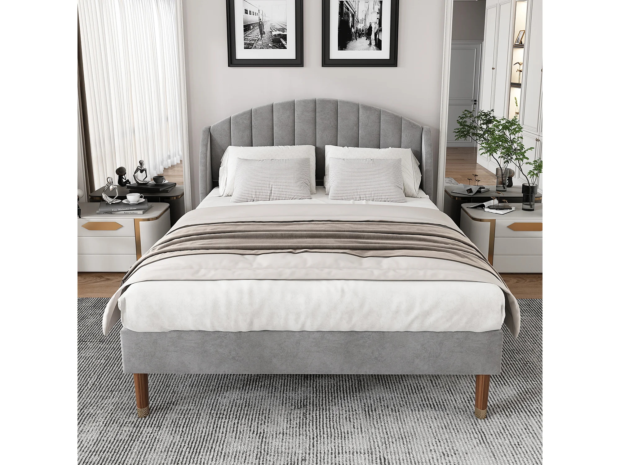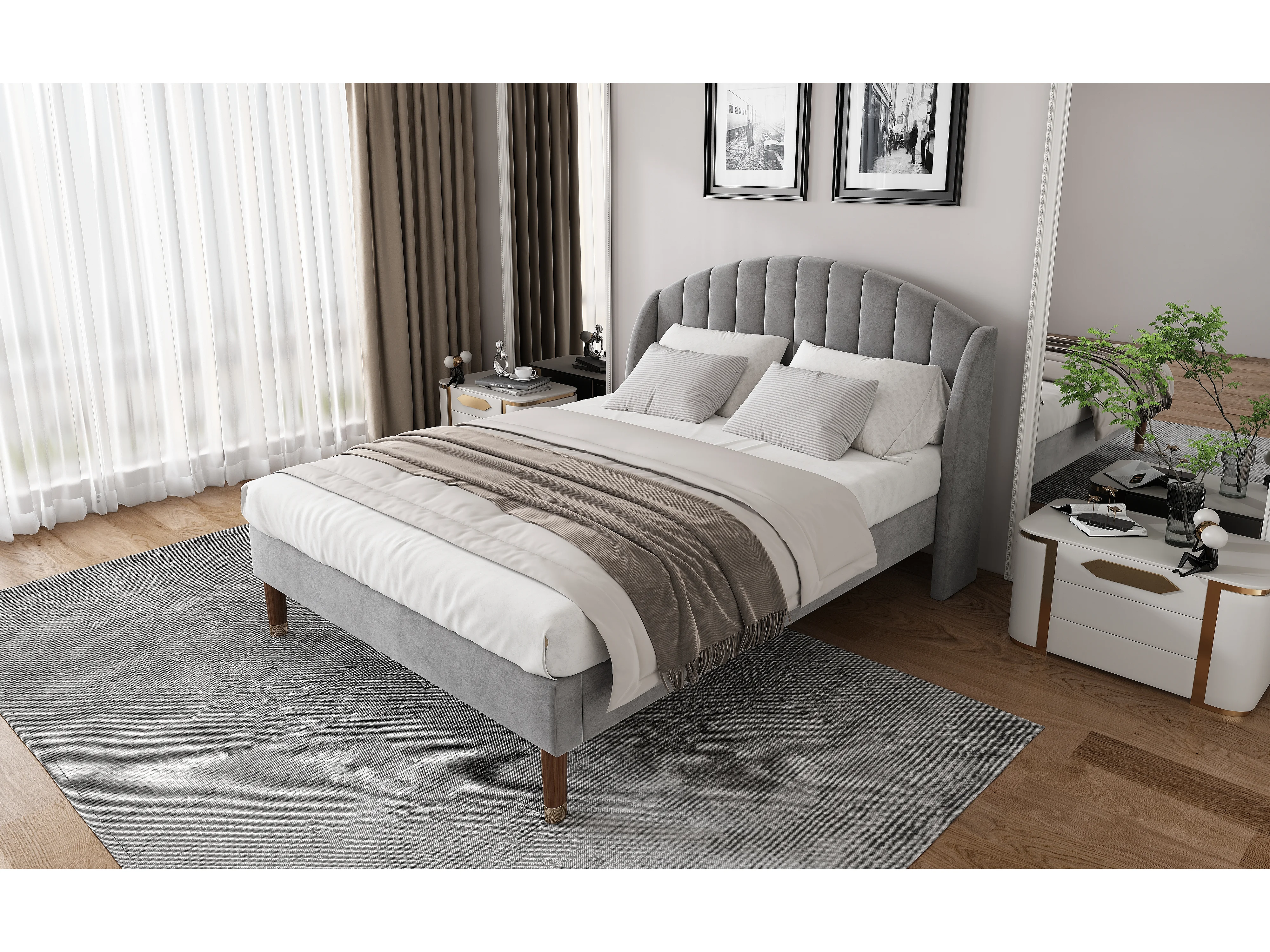 Lit rembourré 160×200 cm avec sommier à lattes et tête de lit, design moderne en velours gris