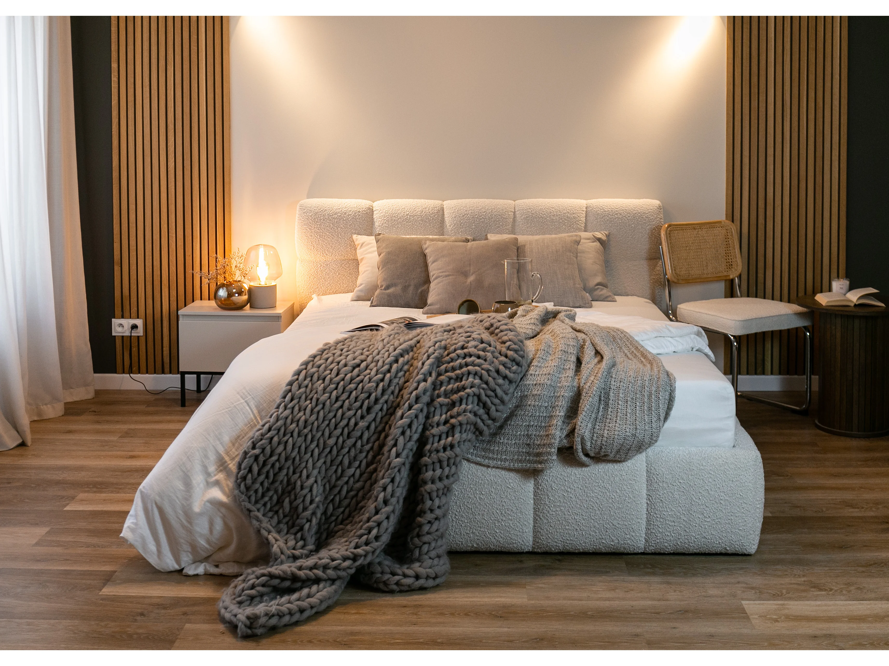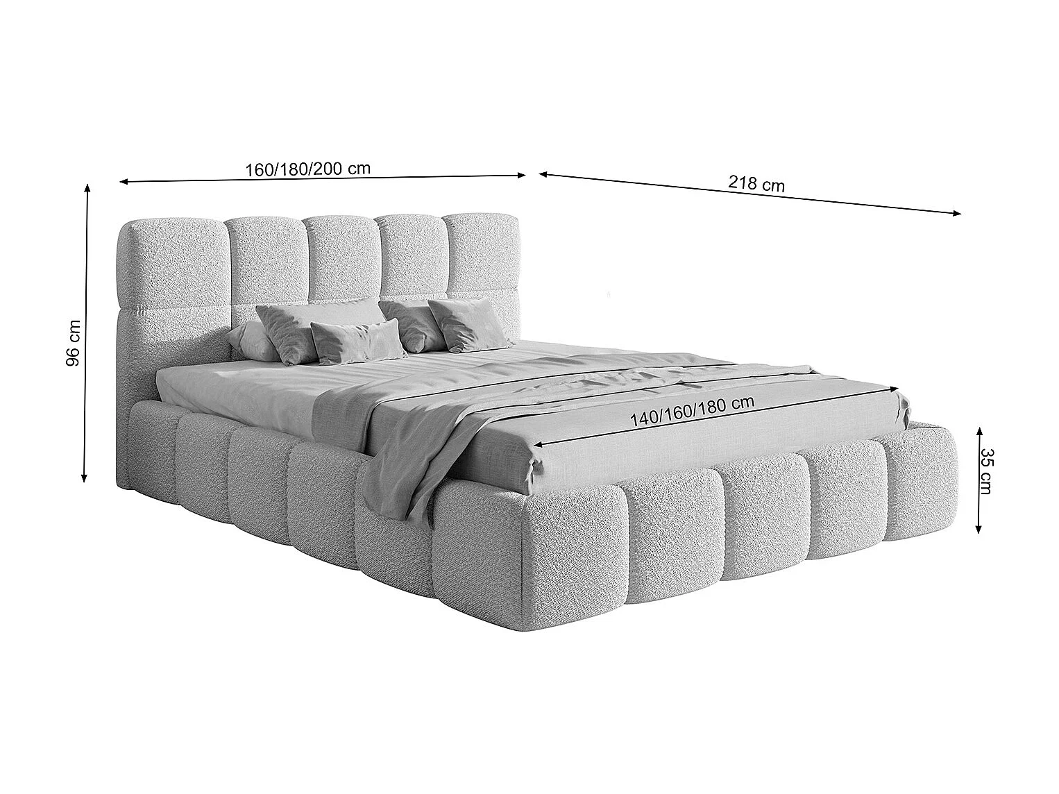 Lit rembourré - 160x200 cm - beige clair boucle - CLOUDY