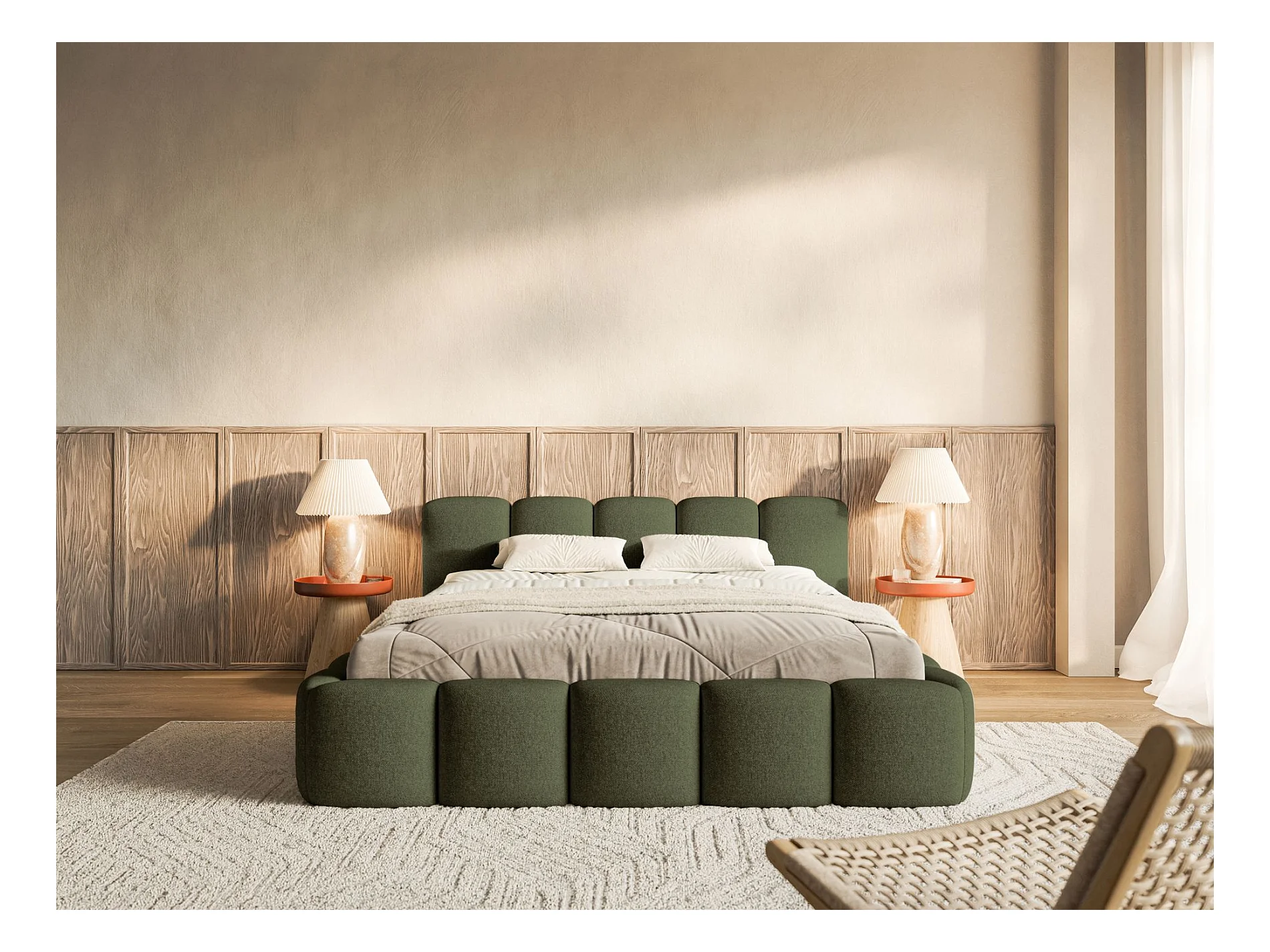 Lit rembourré – 160x200 cm – olive – chenille hydrophobe - CLOUDY LOW