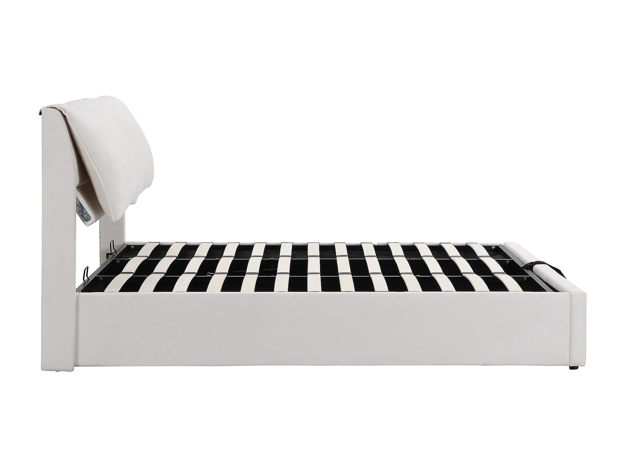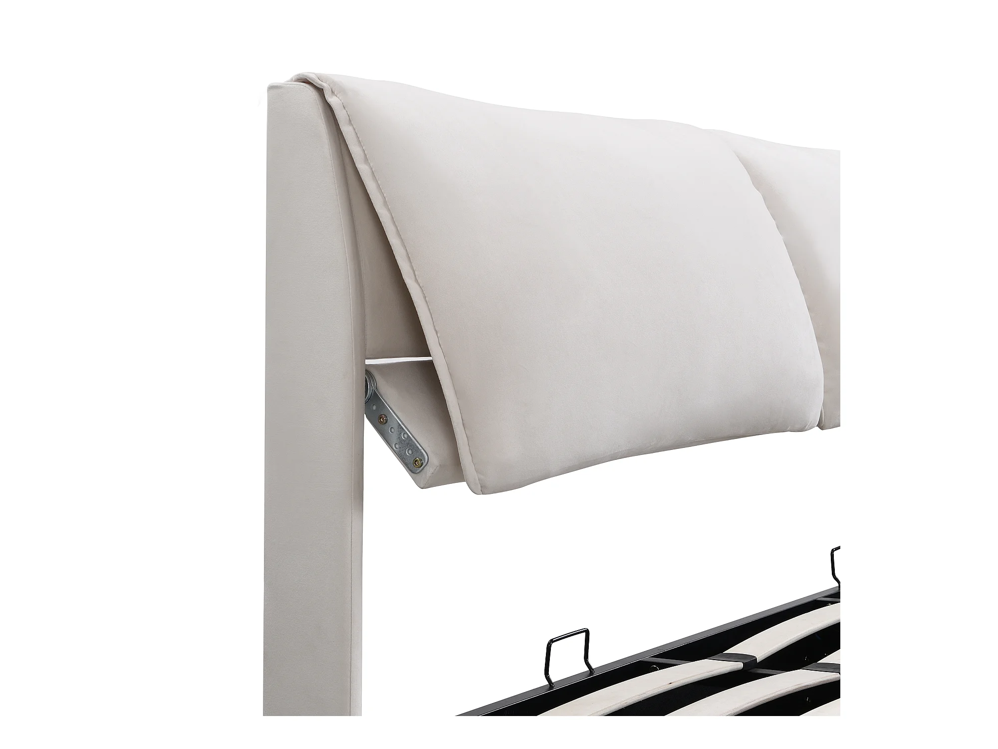 Lit rembourré 180×200 cm, beige, avec tête de lit réglable, trois tiroirs et coffre de rangement