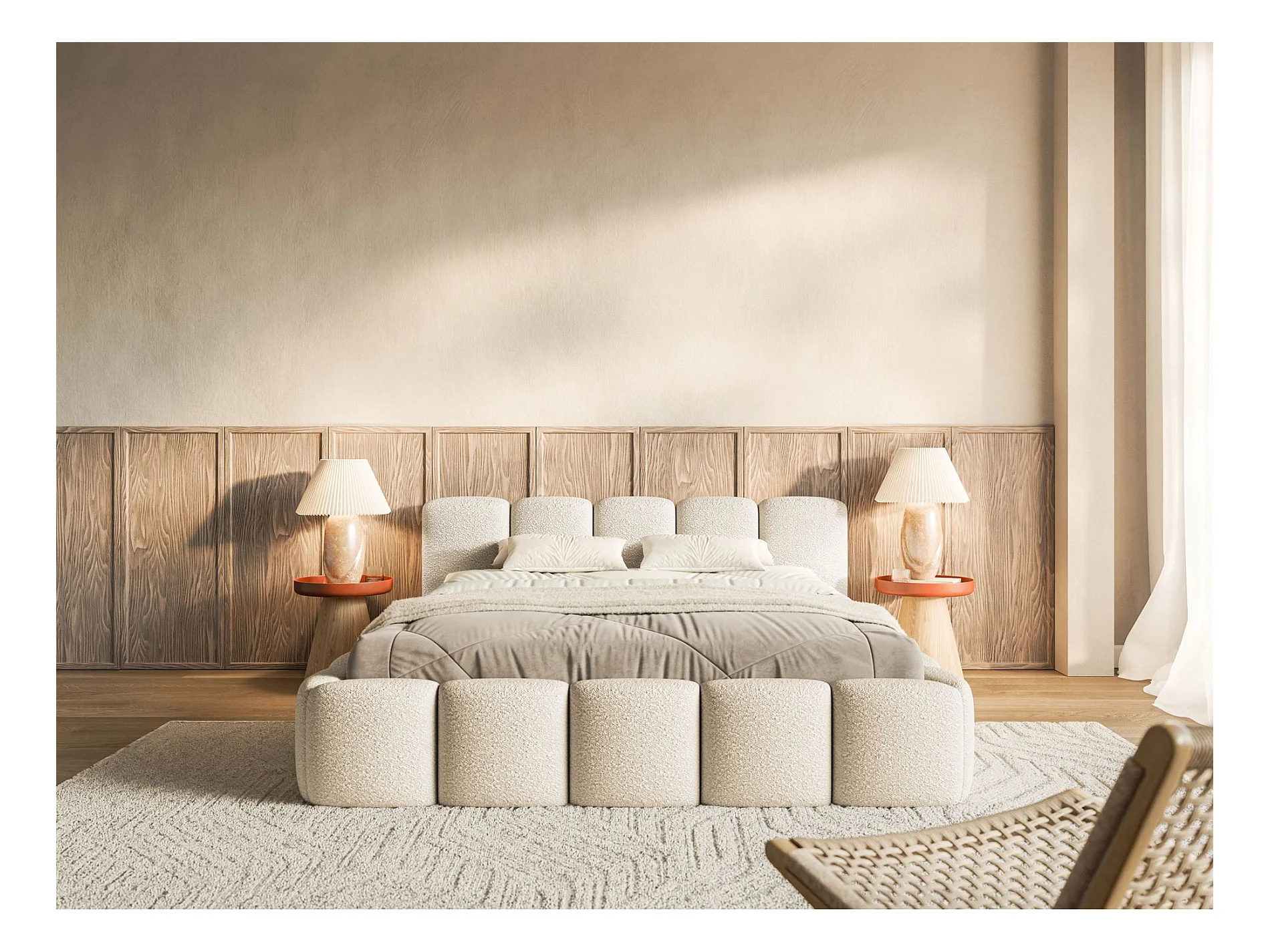 Lit rembourré 200x200 cm - beige clair- Cloudy Low