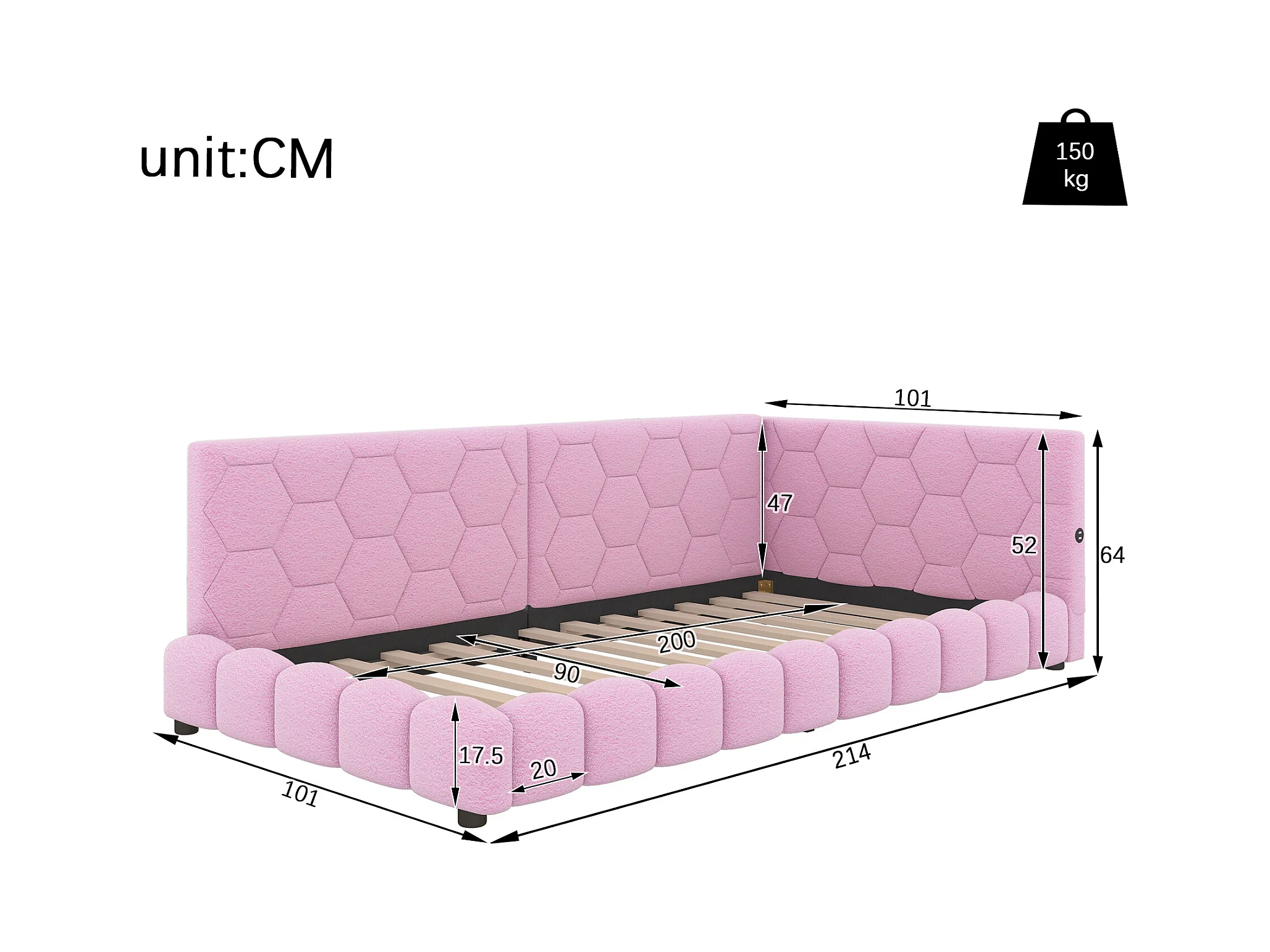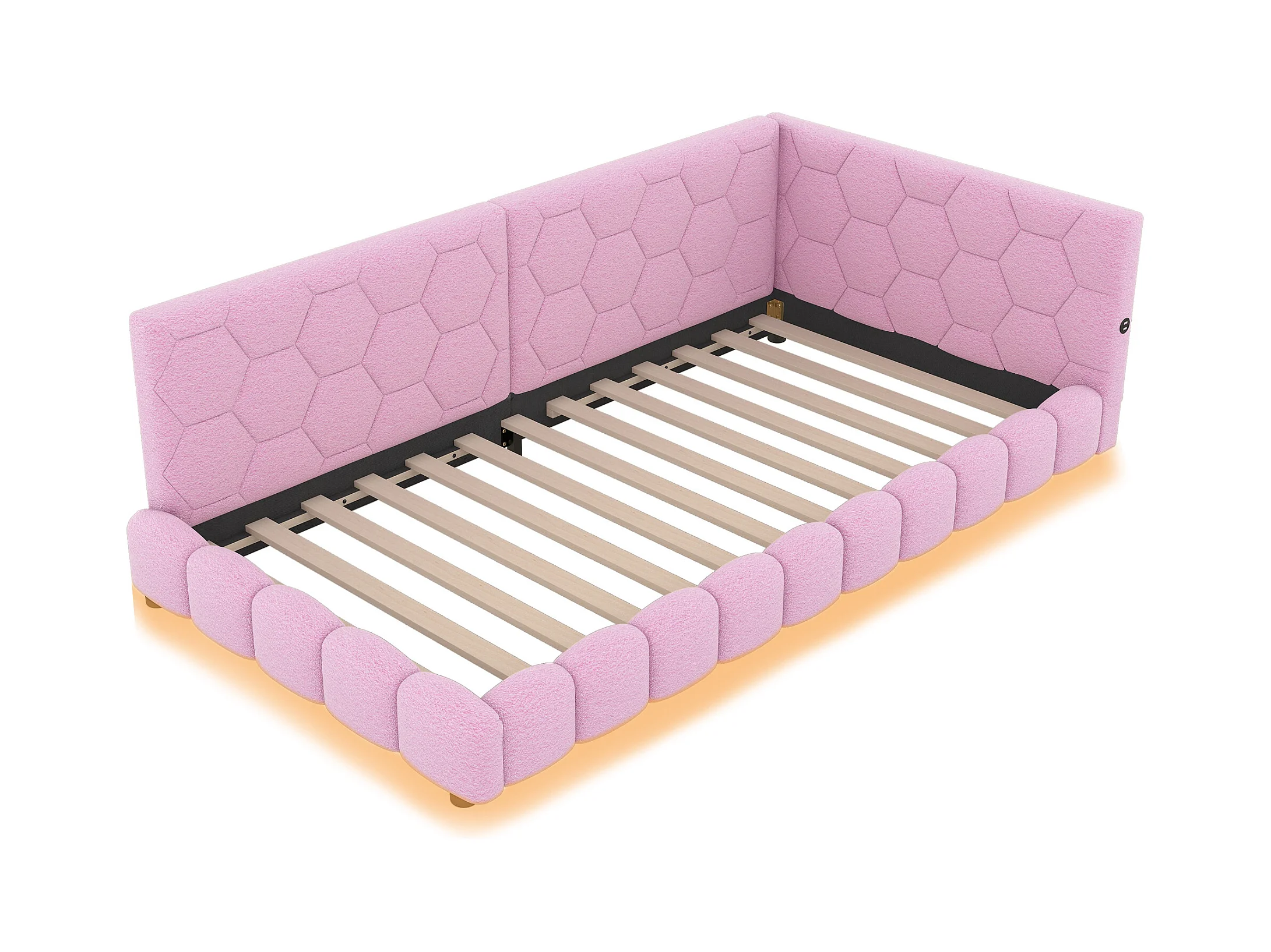 Lit enfant 90x200 cm - Lit ado avec éclairage LED et recharge USB - sommier à lattes - peluche rose