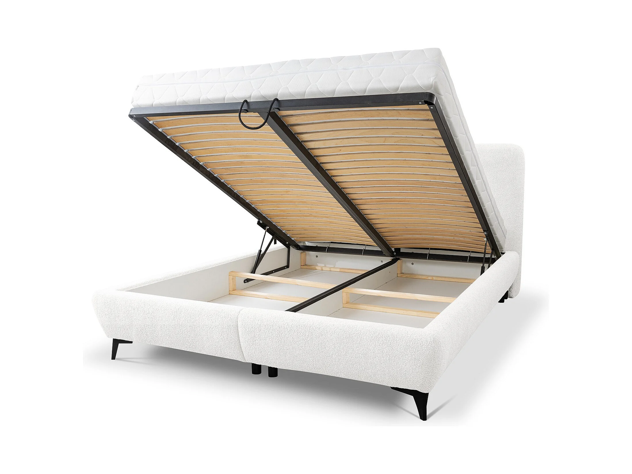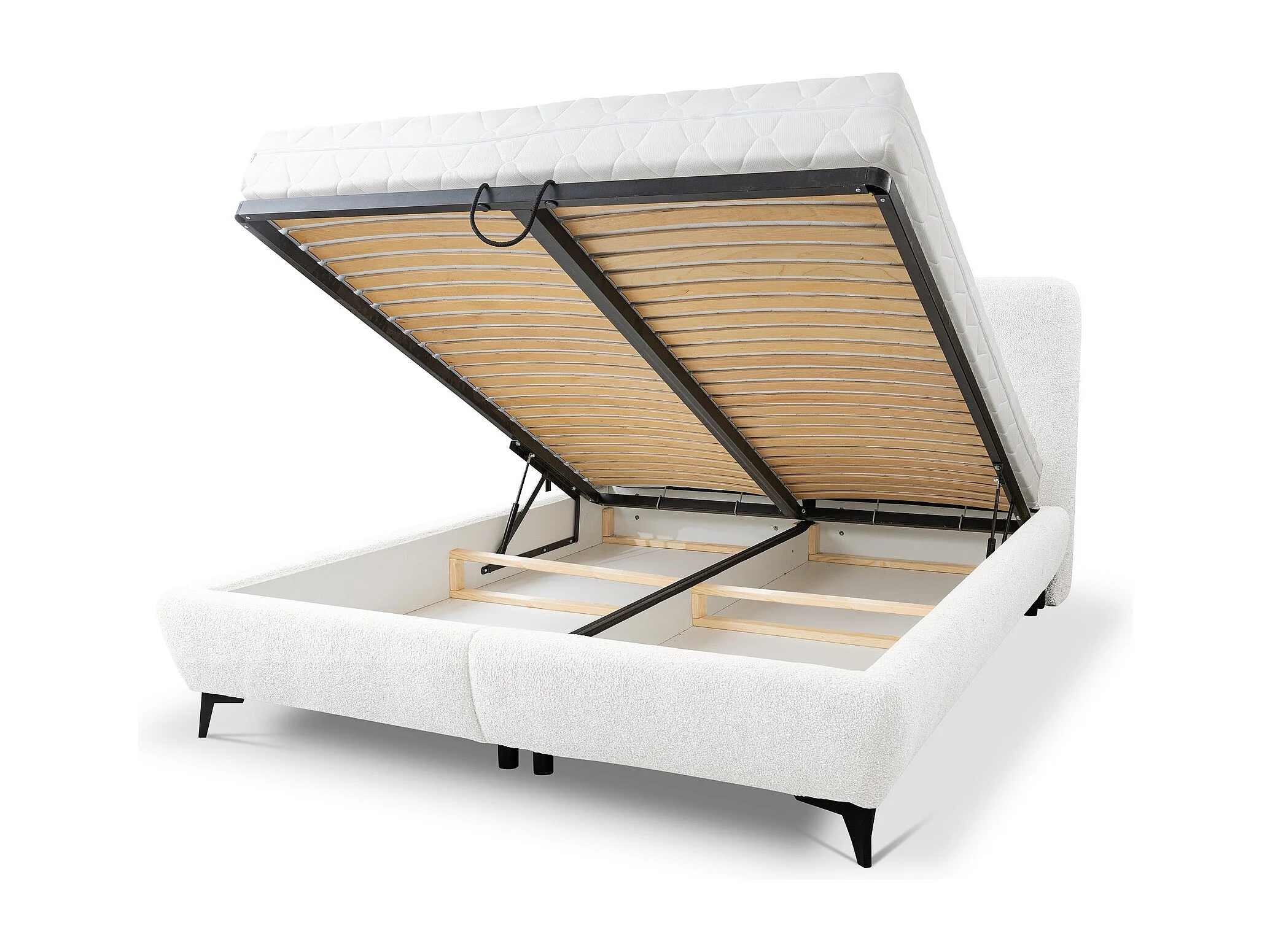 Lit rembourré avec rangement 157 x 223 - en Bouclé - blanc - MAKAPU