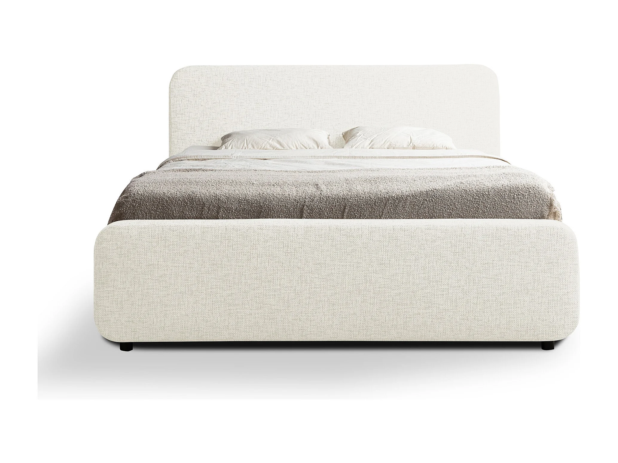 Lit rembourré avec rangement 180 x 222 - en Chenille - beige - HANALE
