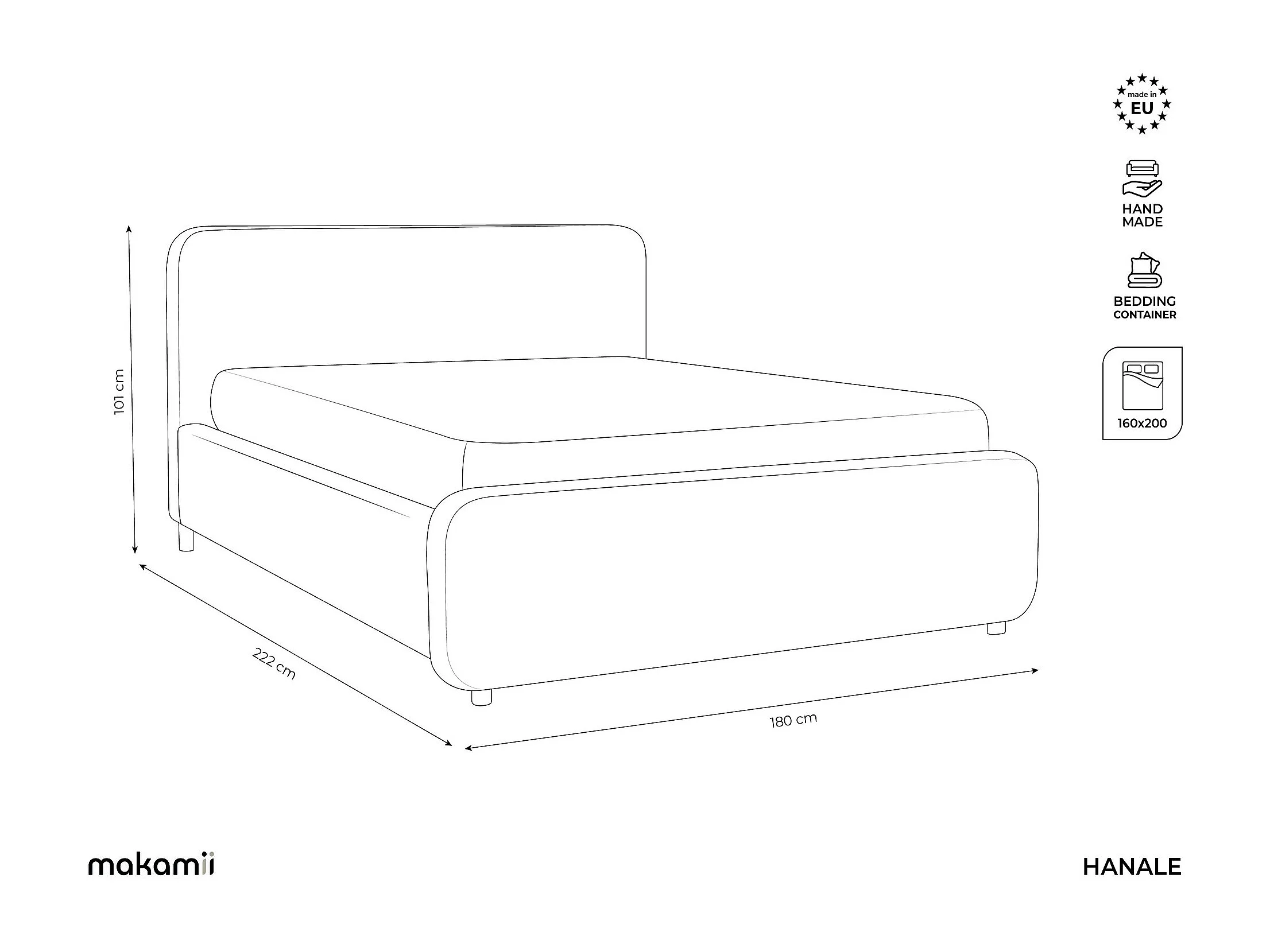 Lit rembourré avec rangement 180 x 222 - en Chenille - gris - HANALE