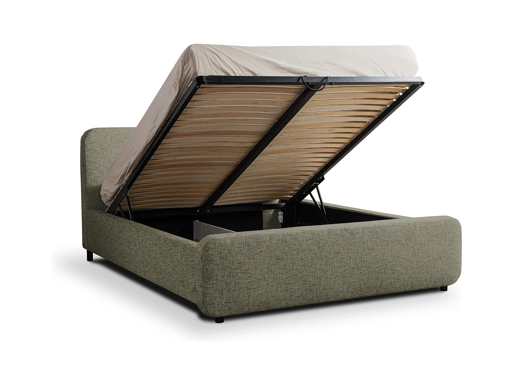 Lit rembourré avec rangement 180 x 222 - en Chenille - vert - HANALE