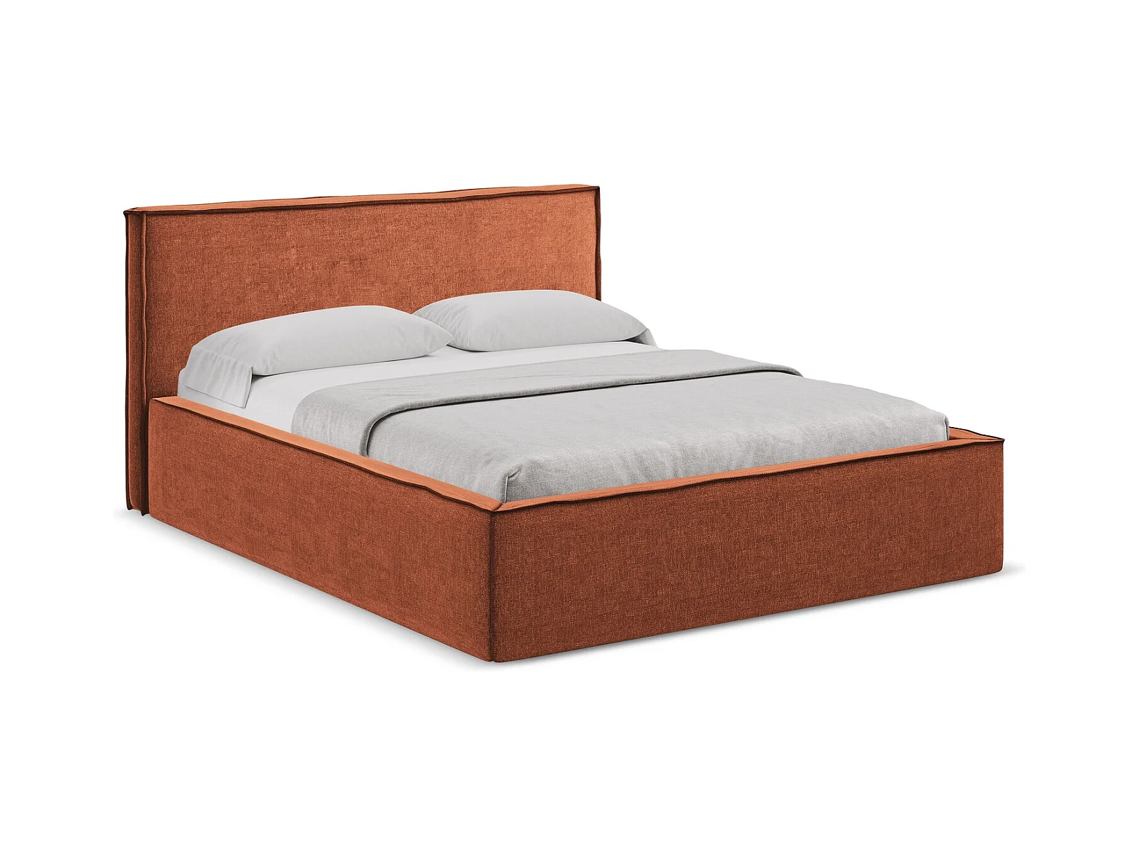 Lit rembourré avec rangement - 180 x 228 - en Chenille - terre cuite - ANANI