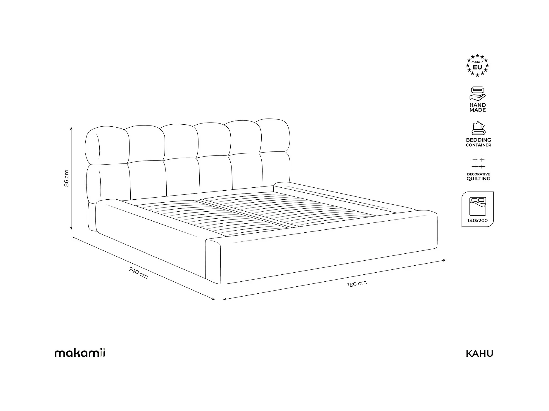 Lit rembourré avec rangement 180 x 240 - en Samt - beige clair - KAHU