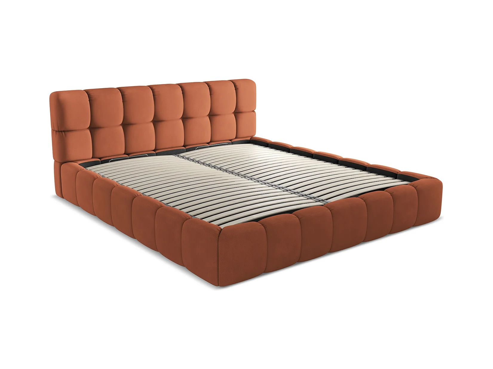 Lit rembourré avec rangement 200 x 228 - en Chenille - terre cuite - NALU