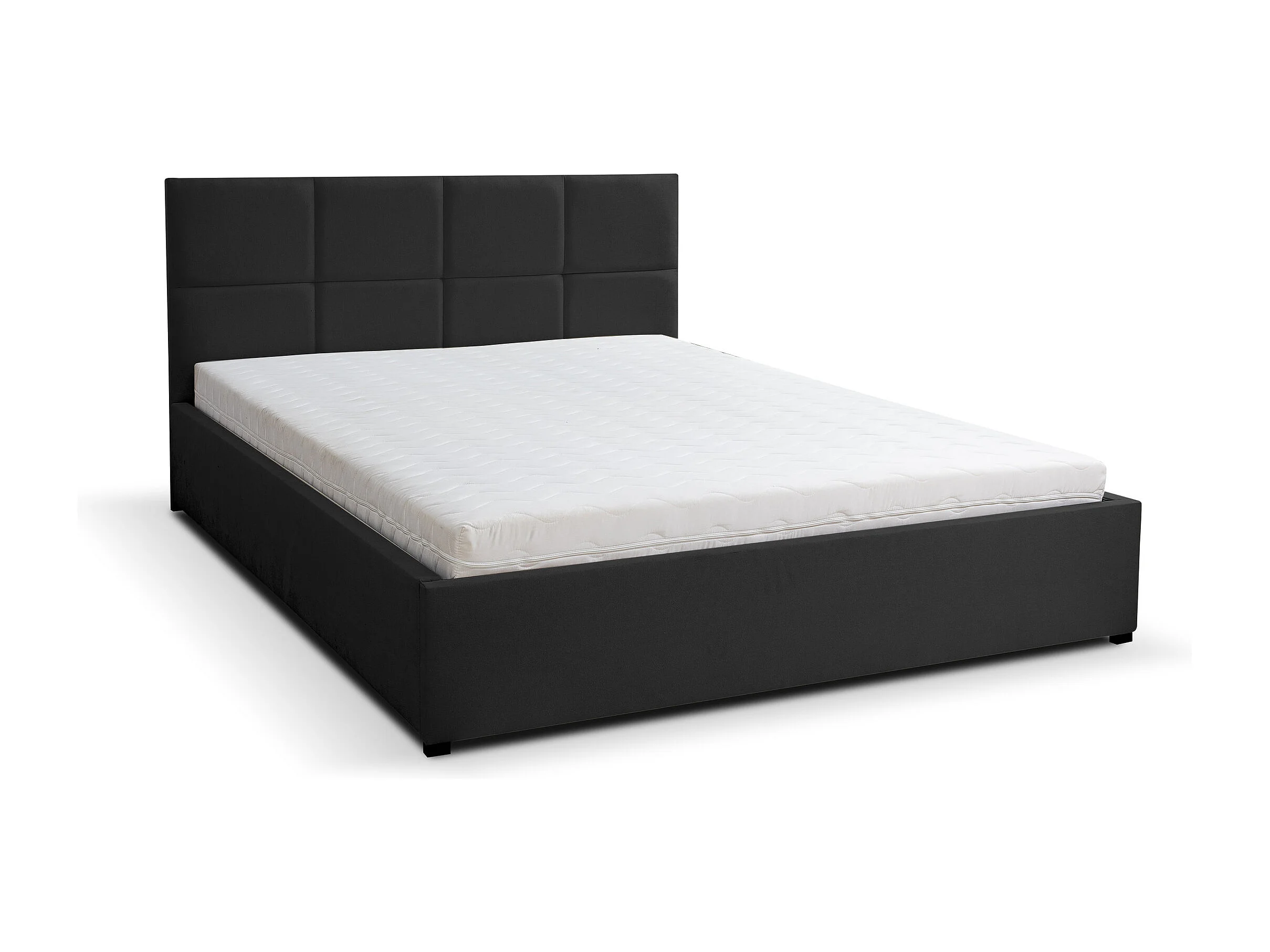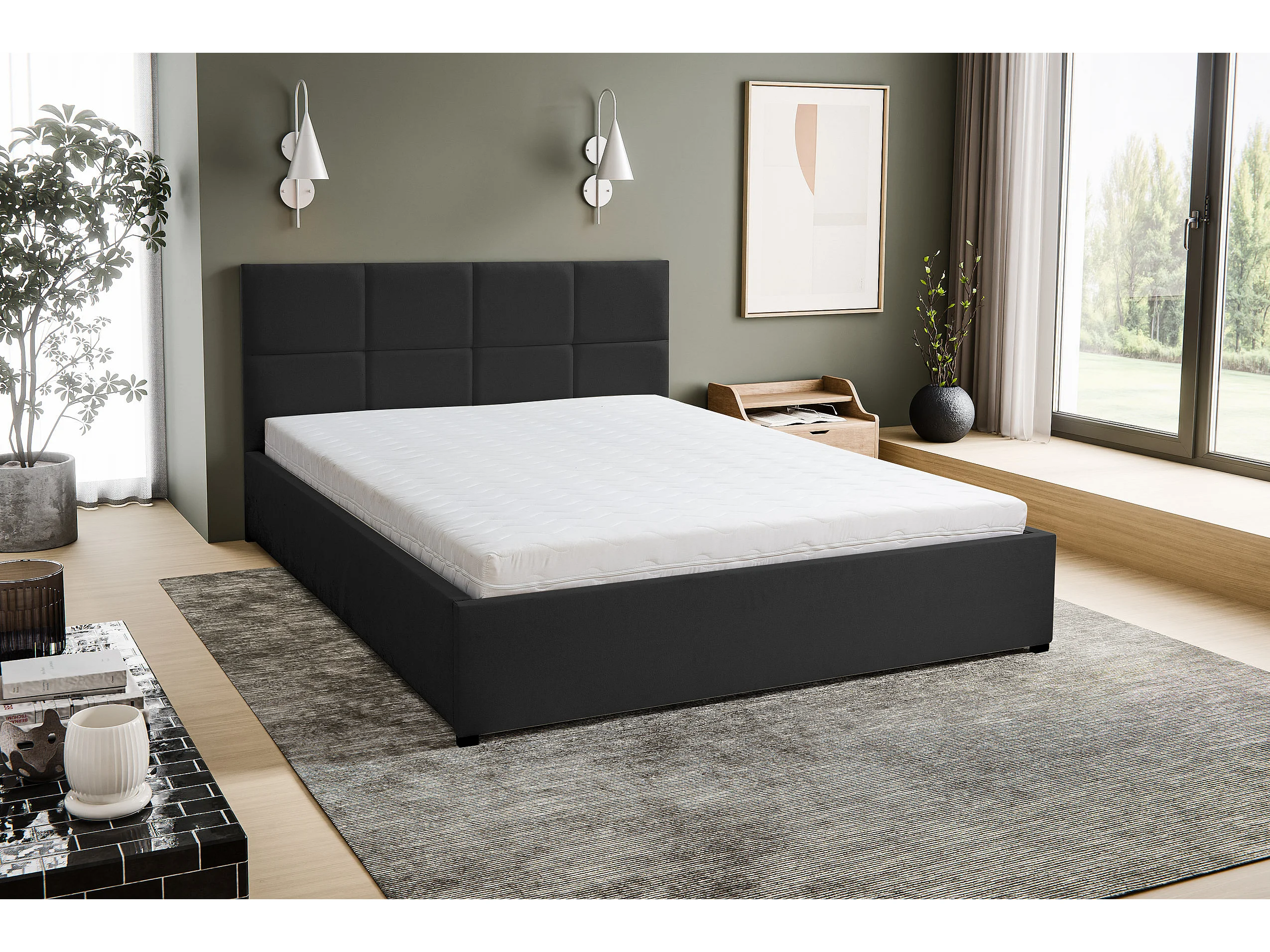 Lit rembourré BETTY avec tête de lit, 140 x 200 cm, lit double avec coffre de rangement et sommier à lattes en velours, velours, couleur : noir