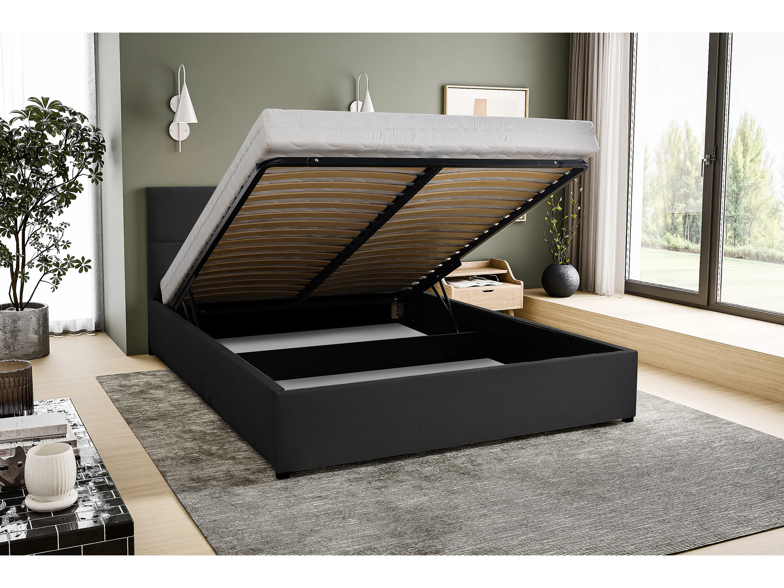 Lit rembourré BETTY avec tête de lit, 160 x 200 cm, lit double avec coffre de rangement et sommier à lattes en velours, velours, couleur : noir