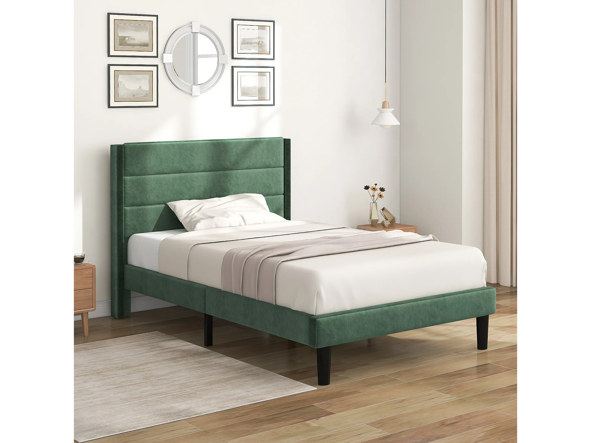 Lit Vert Tissu 90x200 3