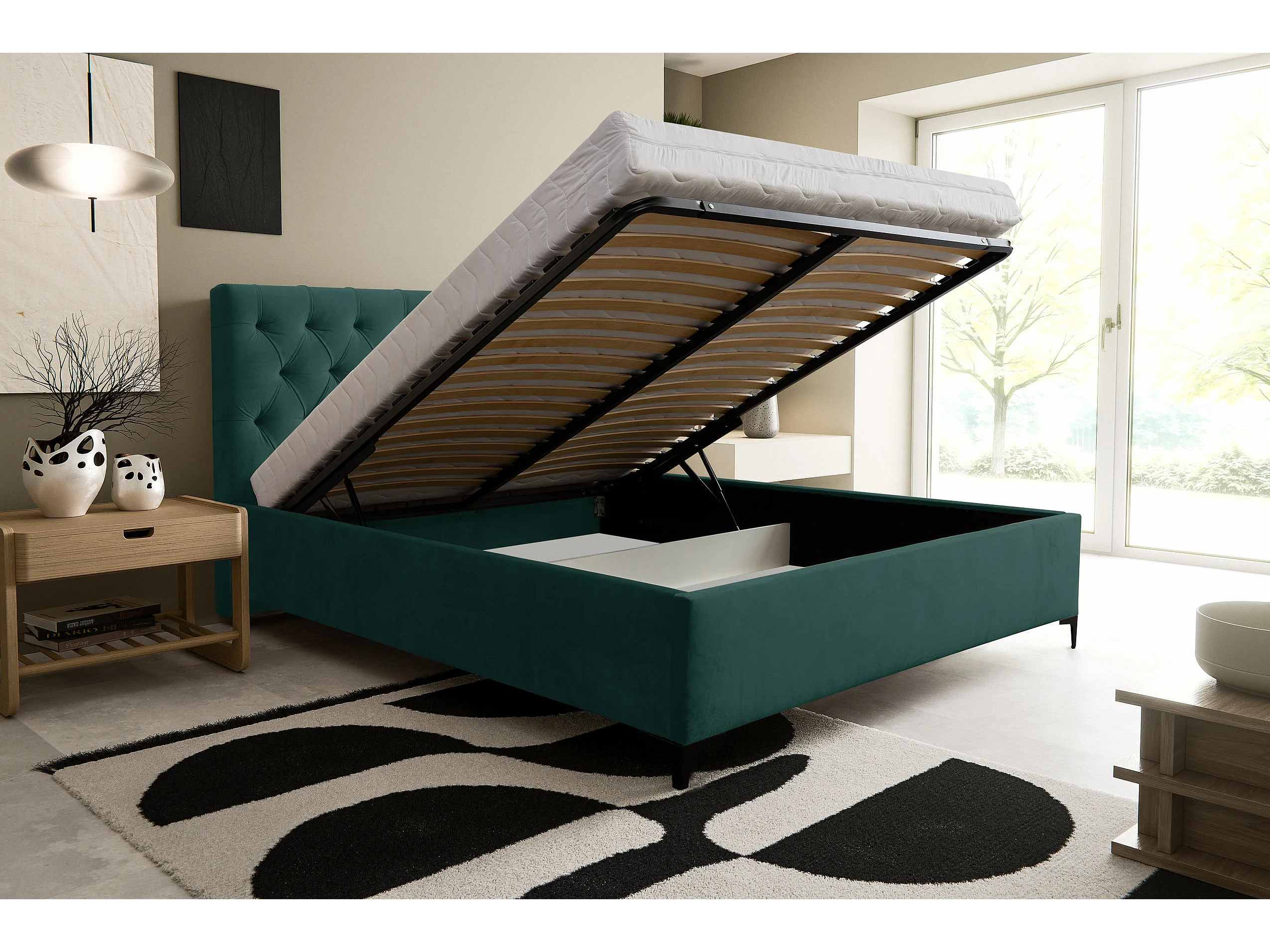 Lit rembourré Chesterfield avec tête de lit, 180 x 200 cm, lit double avec coffre de rangement et sommier à lattes en métal, tissu velours, couleur : vert
