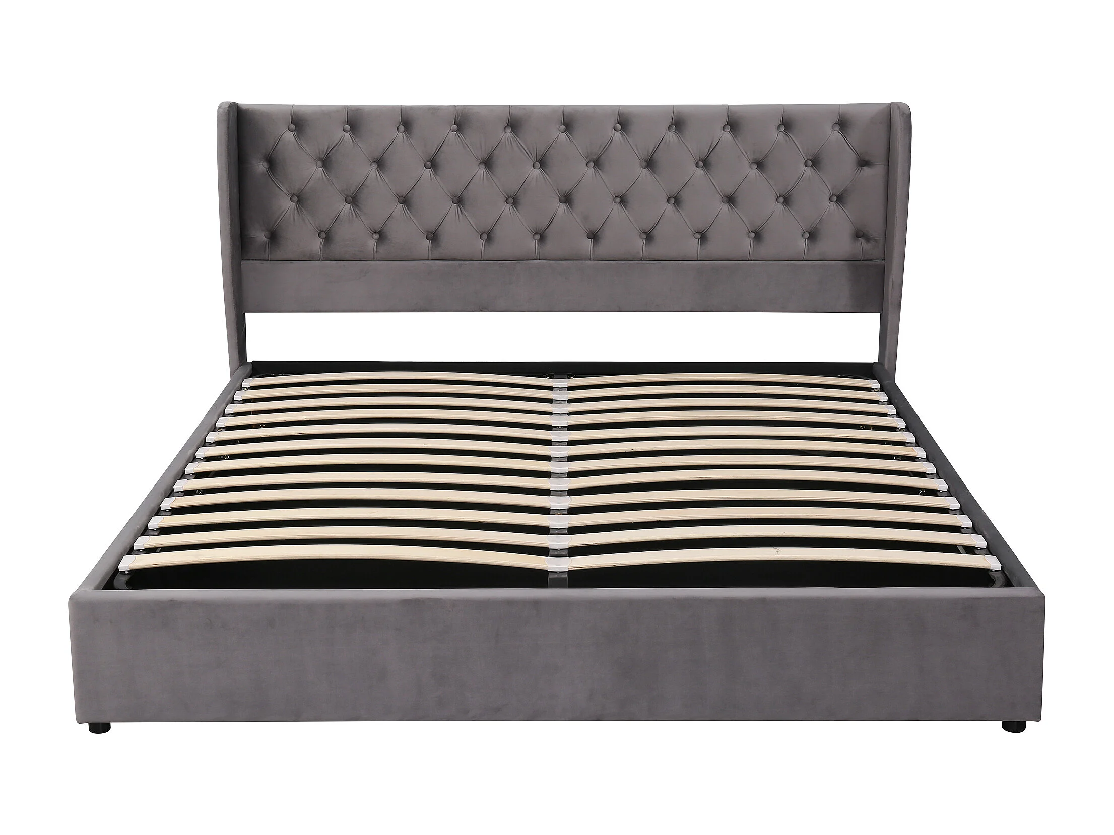 Lit rembourré Chesterfield gris 160x200 cm avec tête de lit haute et rangement hydraulique, design raffiné