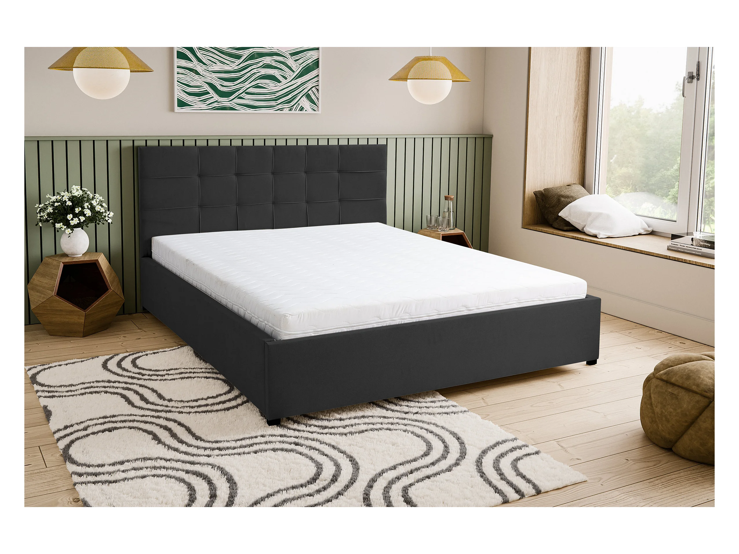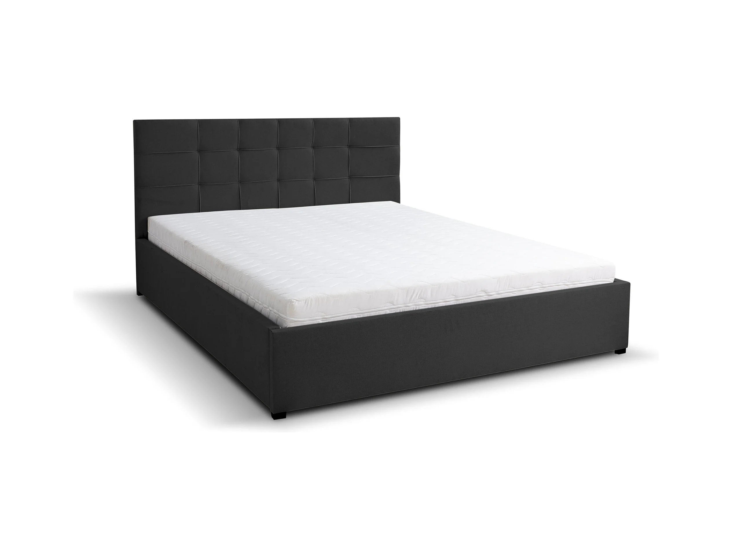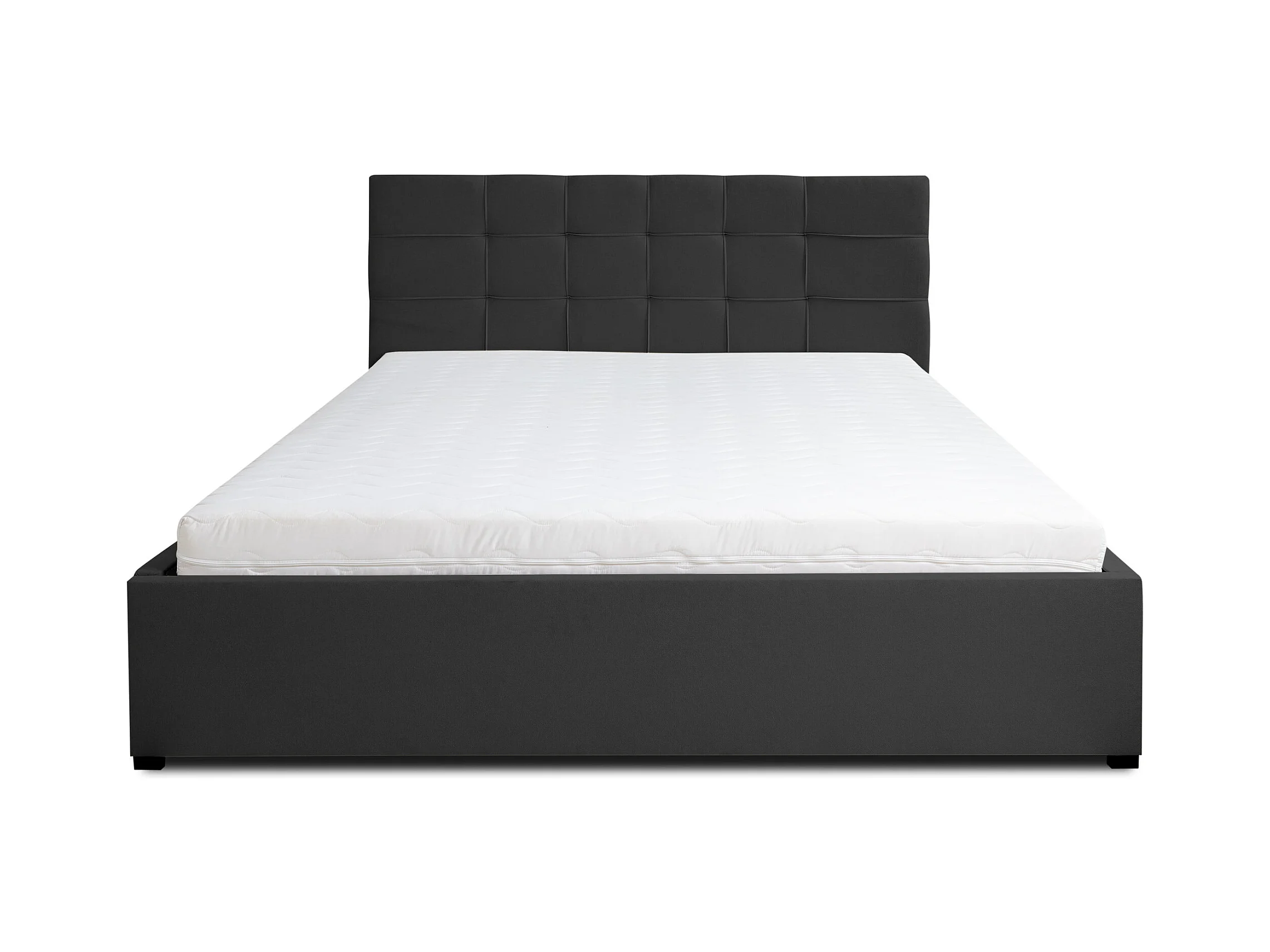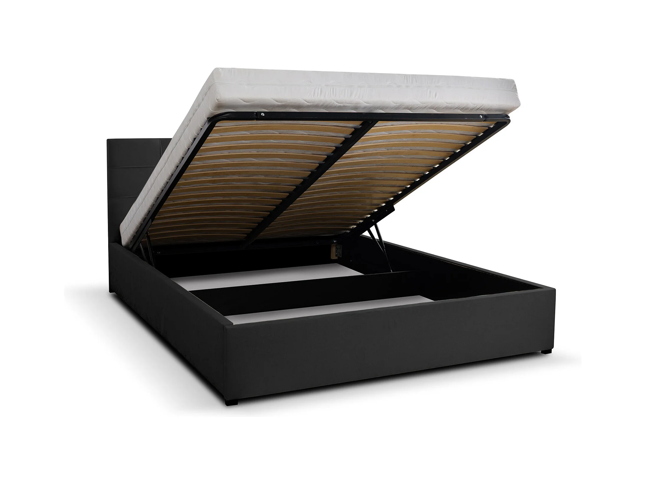 Lit rembourré JESSA avec tête de lit, 180 x 200 cm, lit double avec coffre de rangement et sommier à lattes en velours, velours, couleur : noir