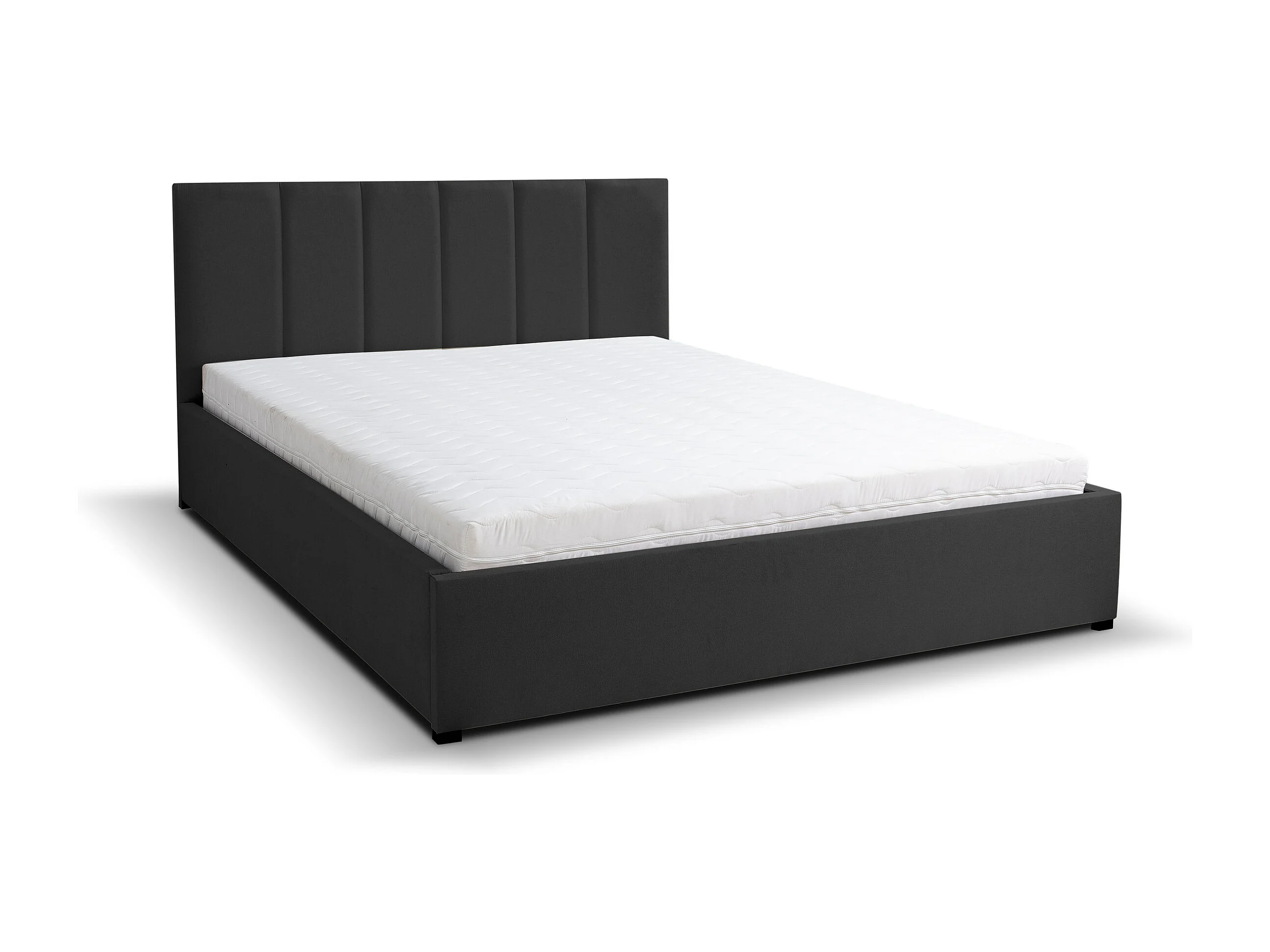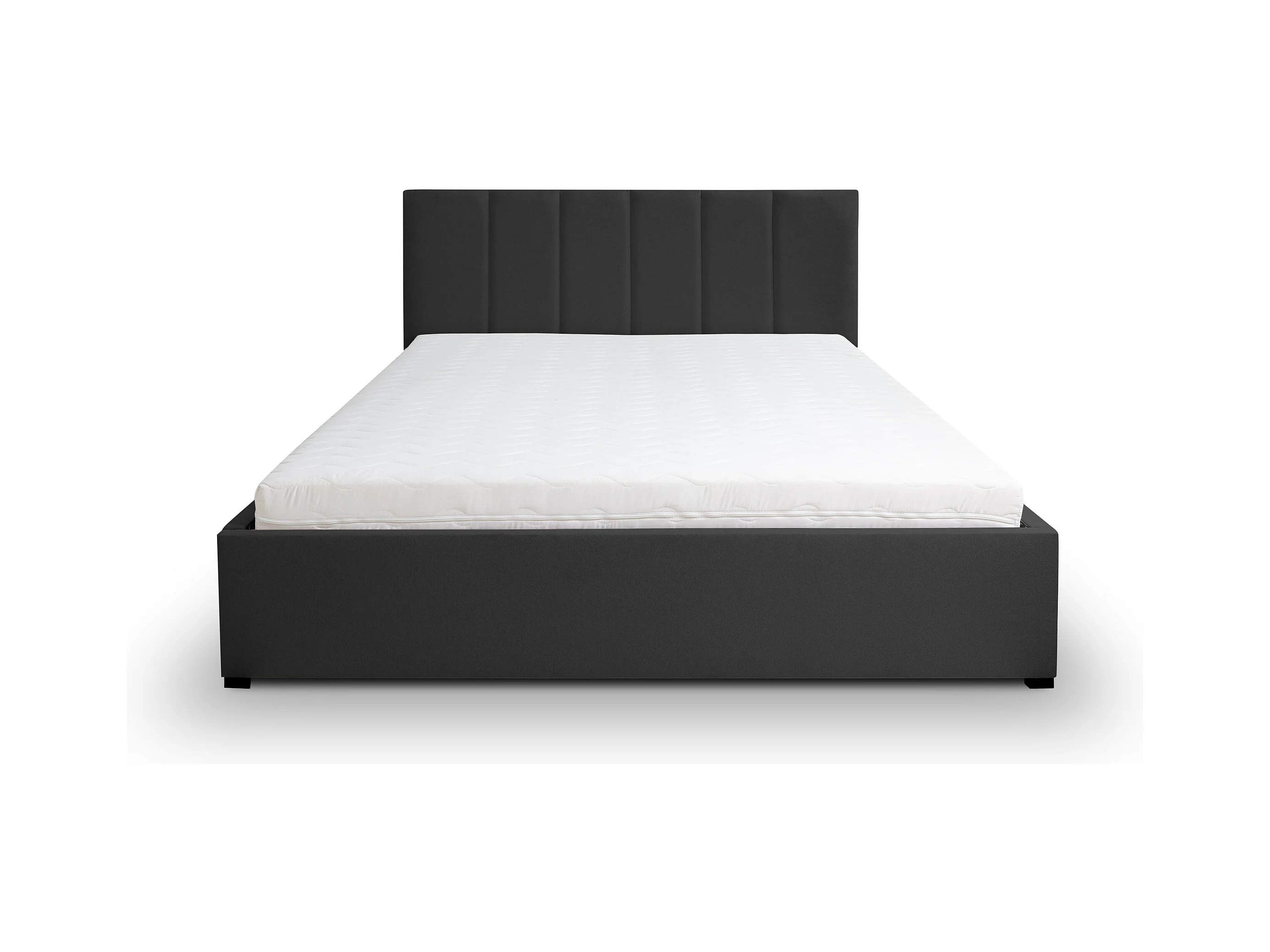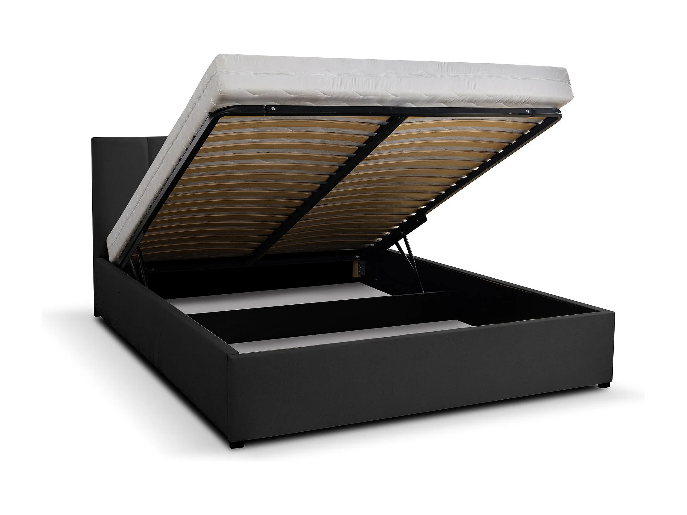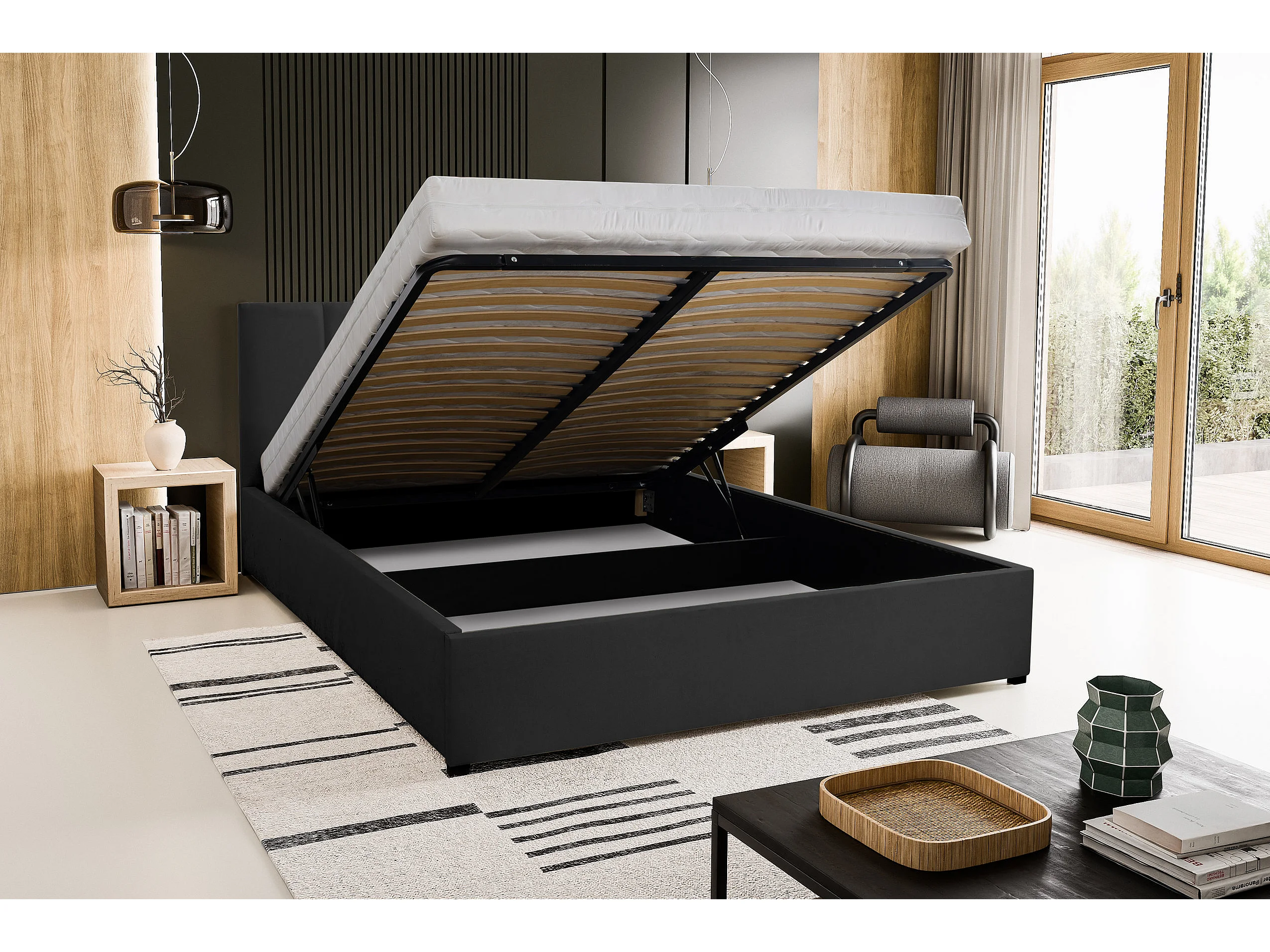Lit rembourré LISA avec tête de lit, 160 x 200 cm, lit double avec coffre de rangement et sommier à lattes en velours, velours, couleur : noir