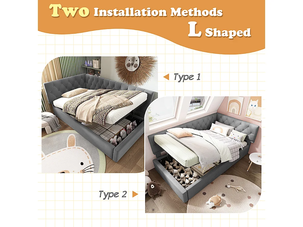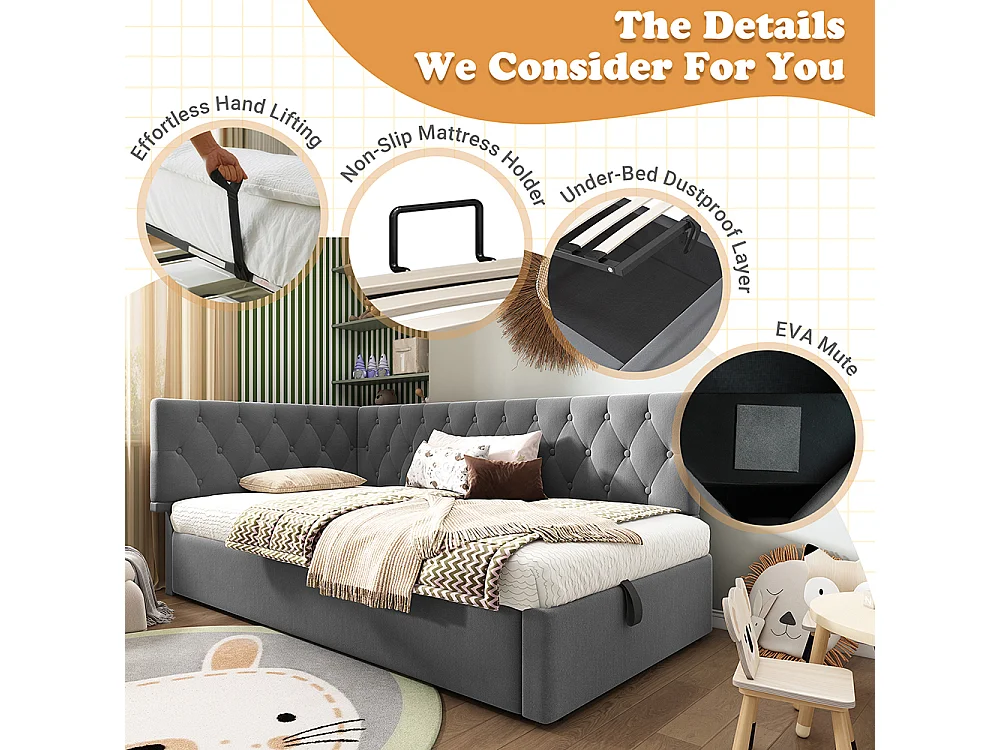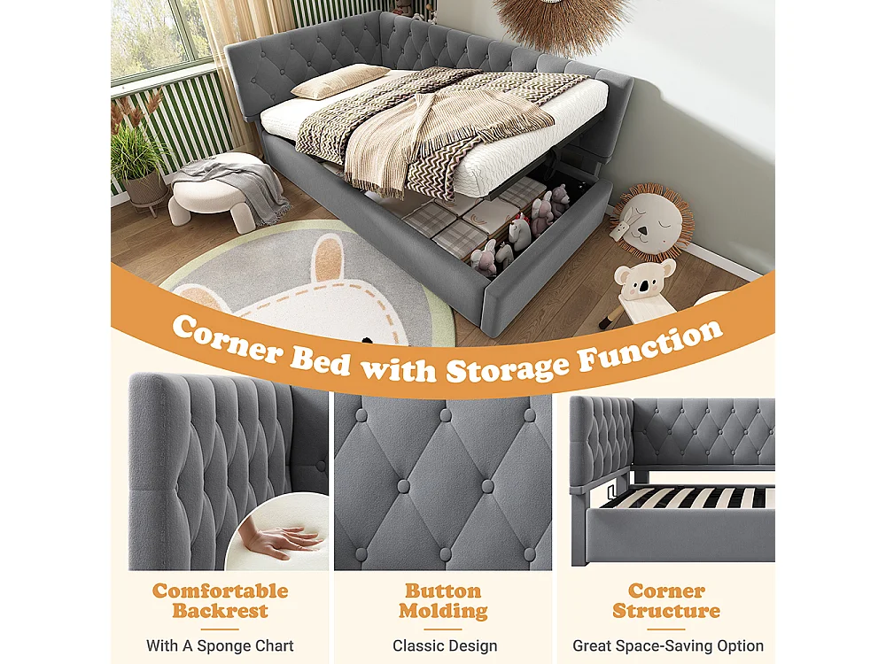 Lit rembourré, lit de repos 90x200cm, canapé convertible avec rangement hydraulique, lit enfant, lit jeune gris, sans matelas.