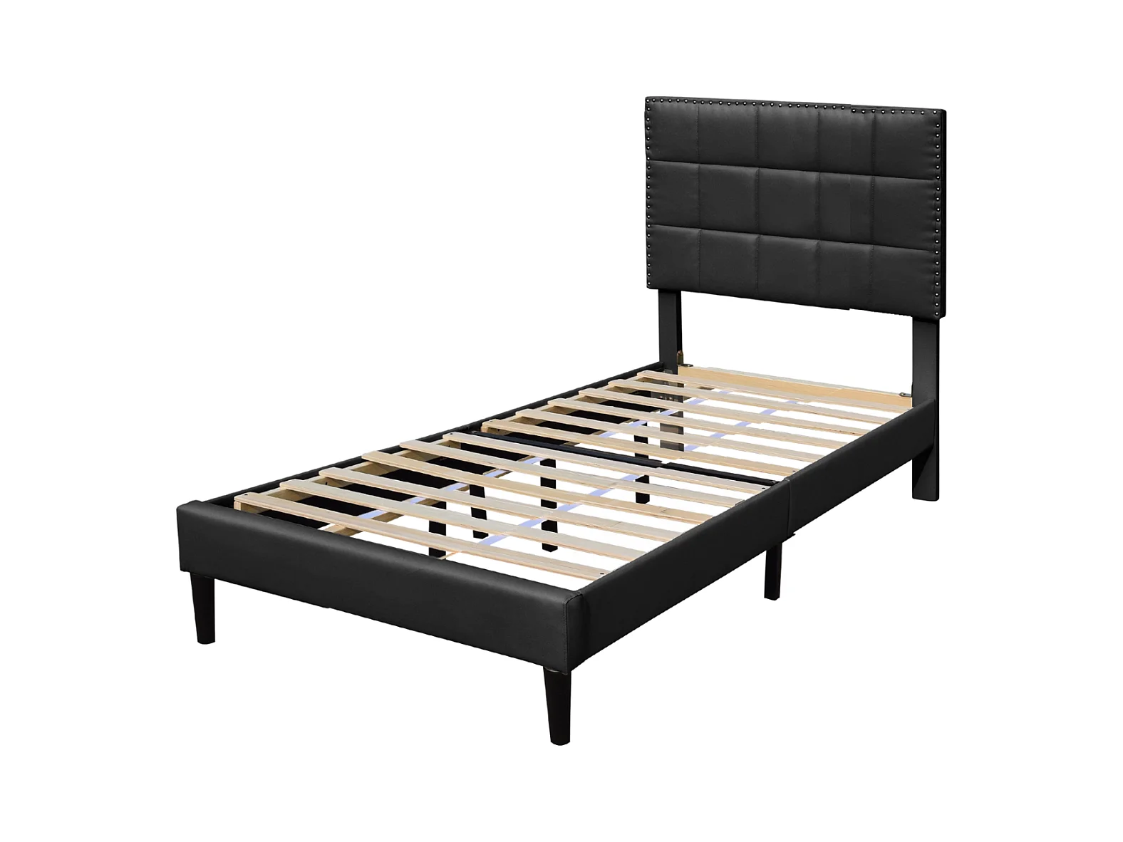 Lit riley pour matelas 120x200-Sommier+Tête de Lit Capitonnee Couleur NOIR+Pieds en 16cm pour matelas-2x13Lattes