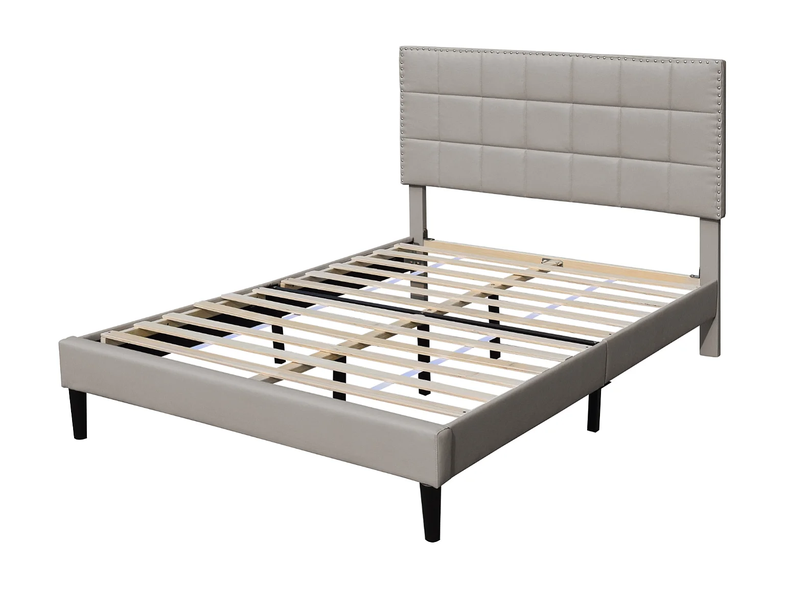 Lit riley pour matelas 140x200-Sommier+Tête de Lit Capitonnee Couleur GRIS+Pieds en 16cm pour matelas-2x13Lattes