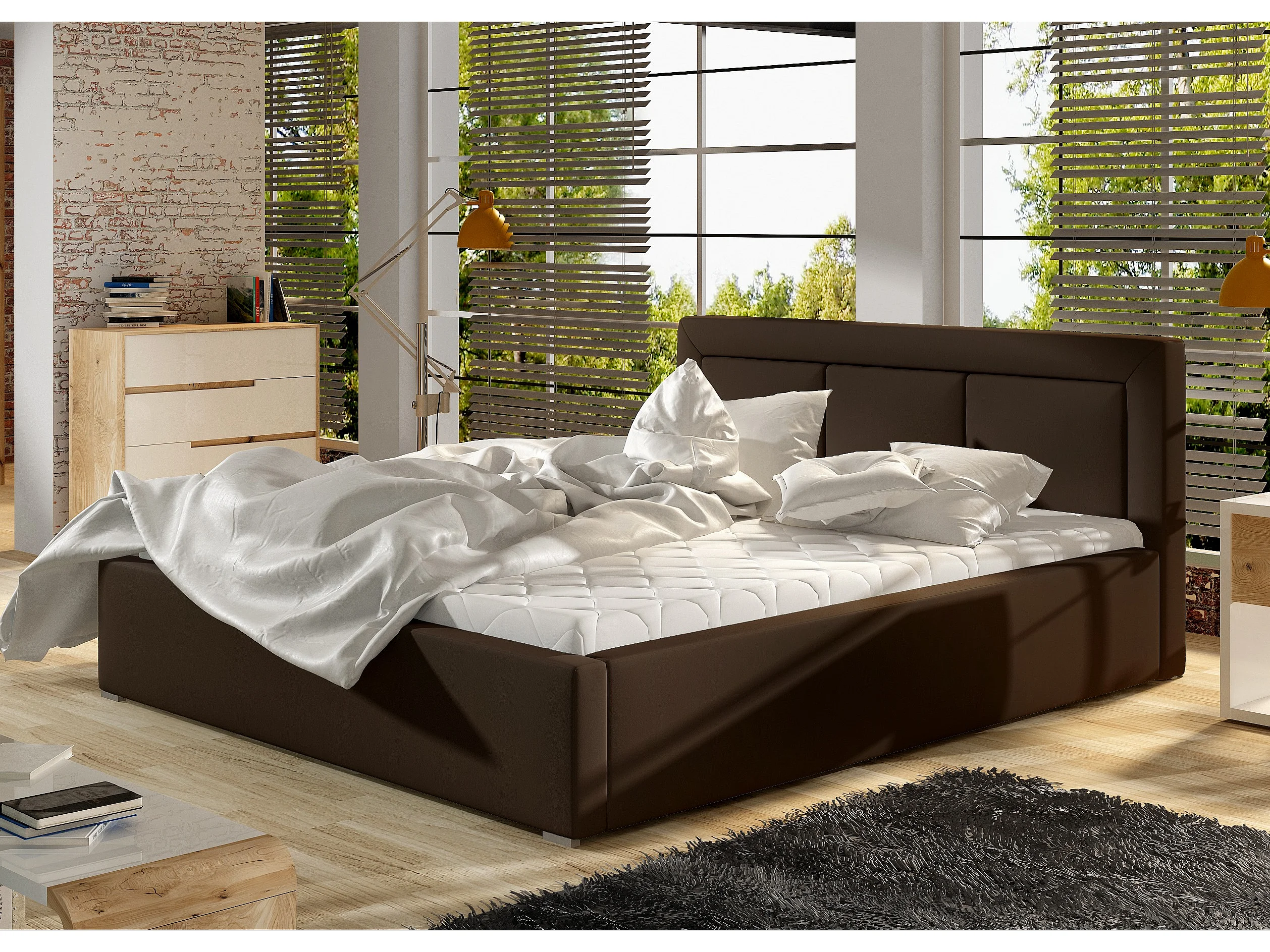 Lit simili cuir marron grand carré capitonné Berlino - 4 tailles-160x200