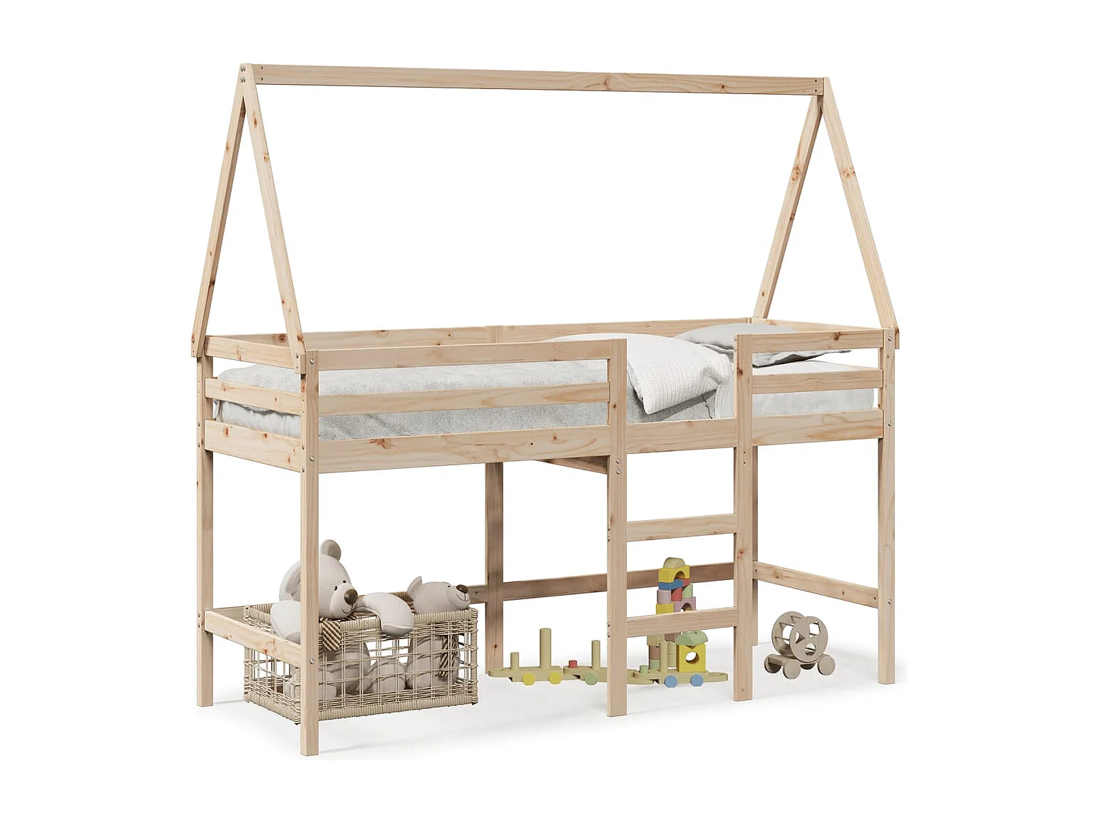 Lit simlpe-Lit superposé avec échelle et toit sans matelas 90x200 cm