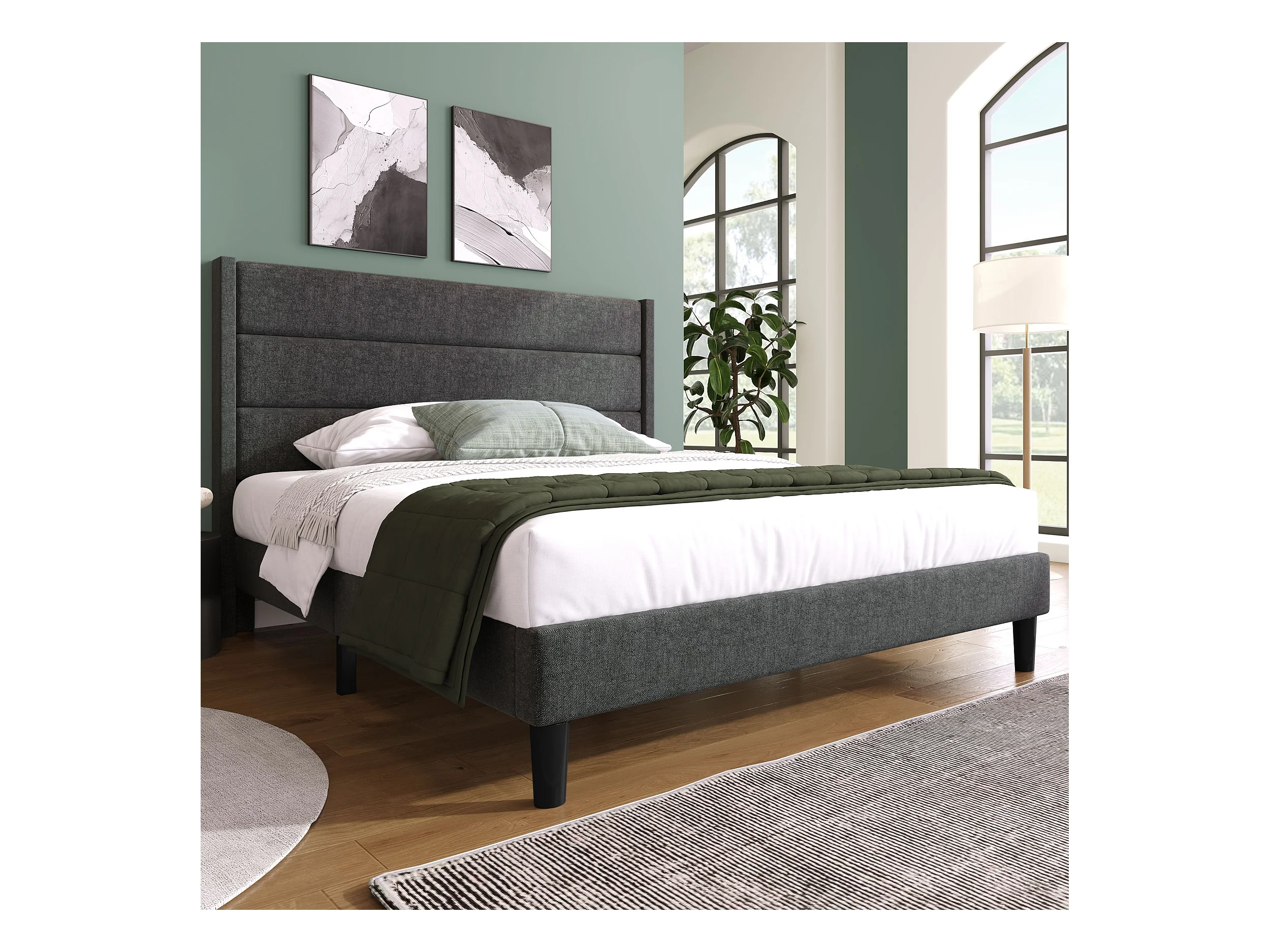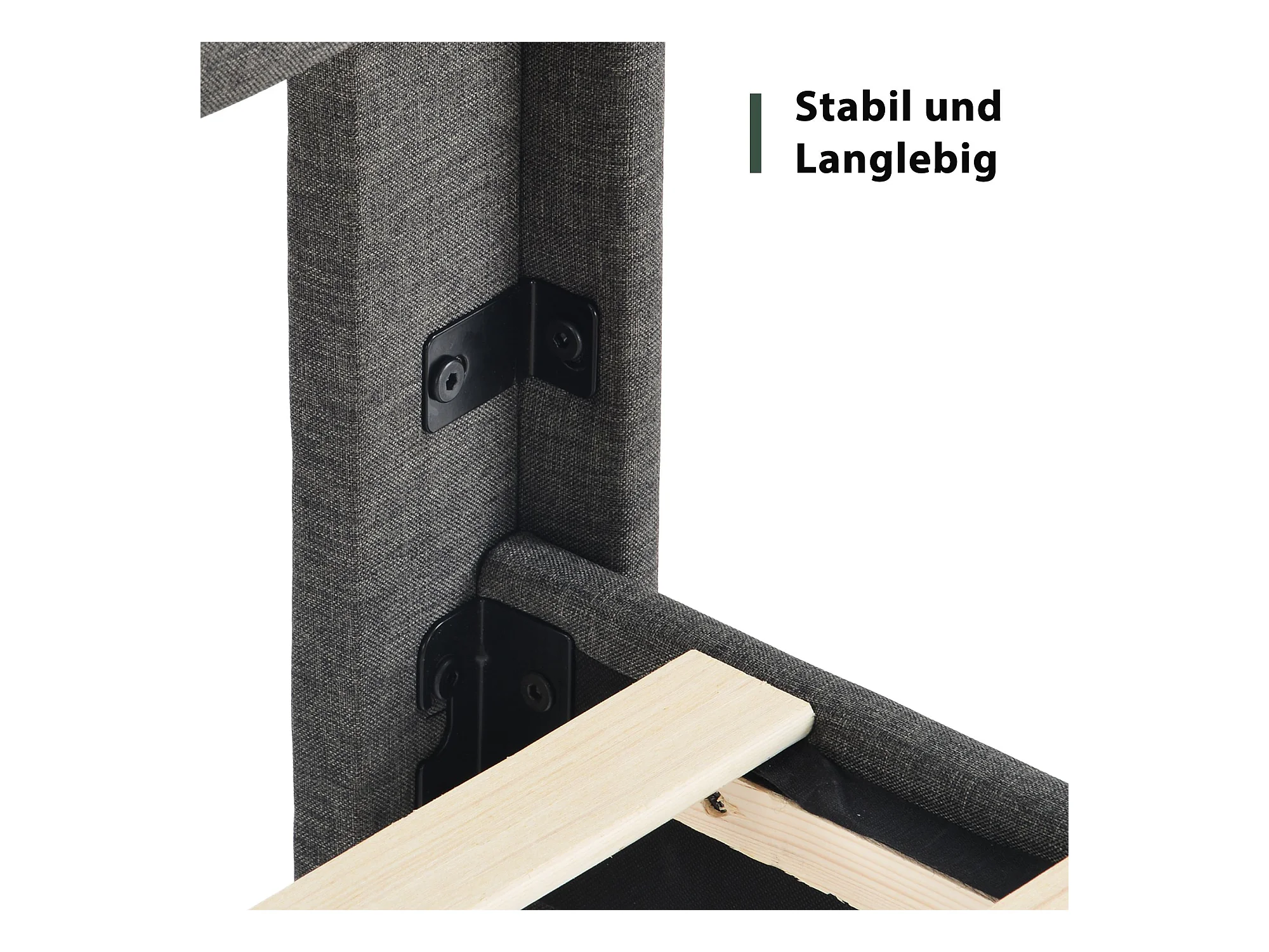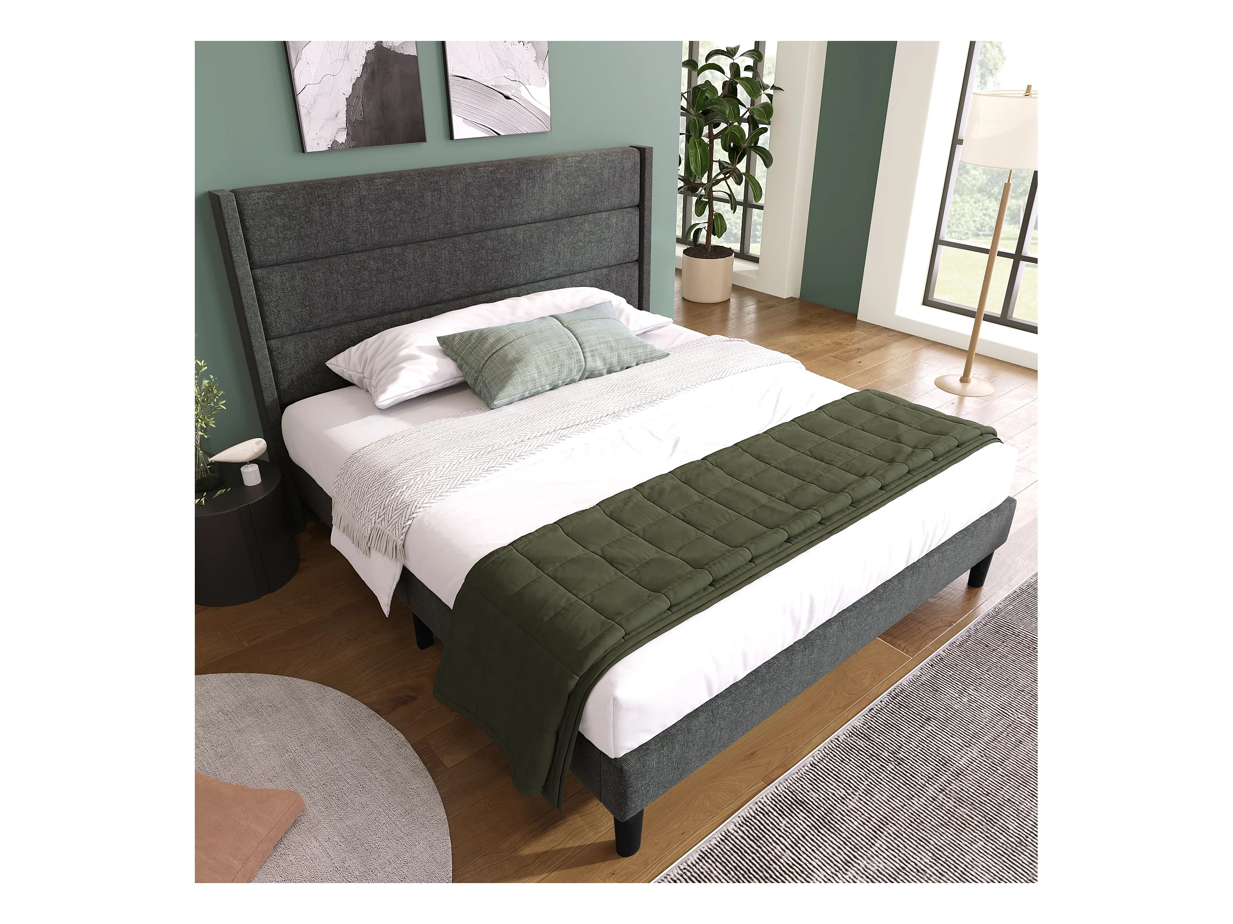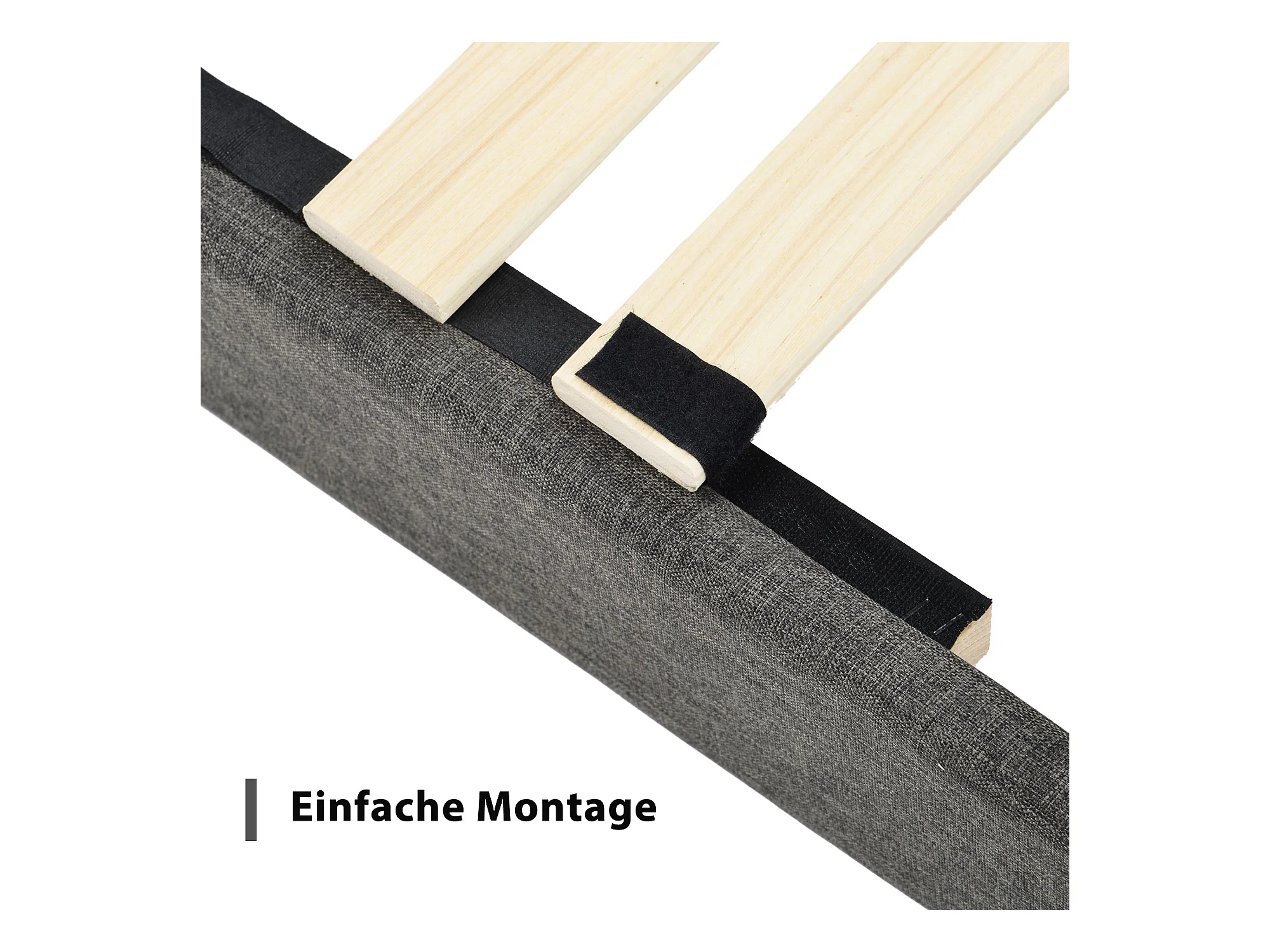 Lit simple 140 x 200 cm - Lit adulte avec sommier à lattes et tête de lit - lin gris - sans matelas