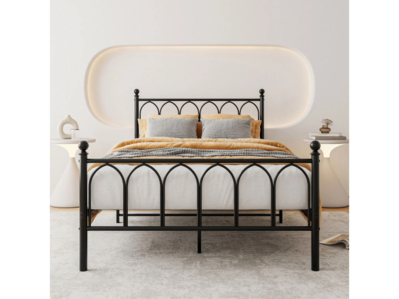Cadre de lit métal avec tête de lit-pied de lit noir 140x190