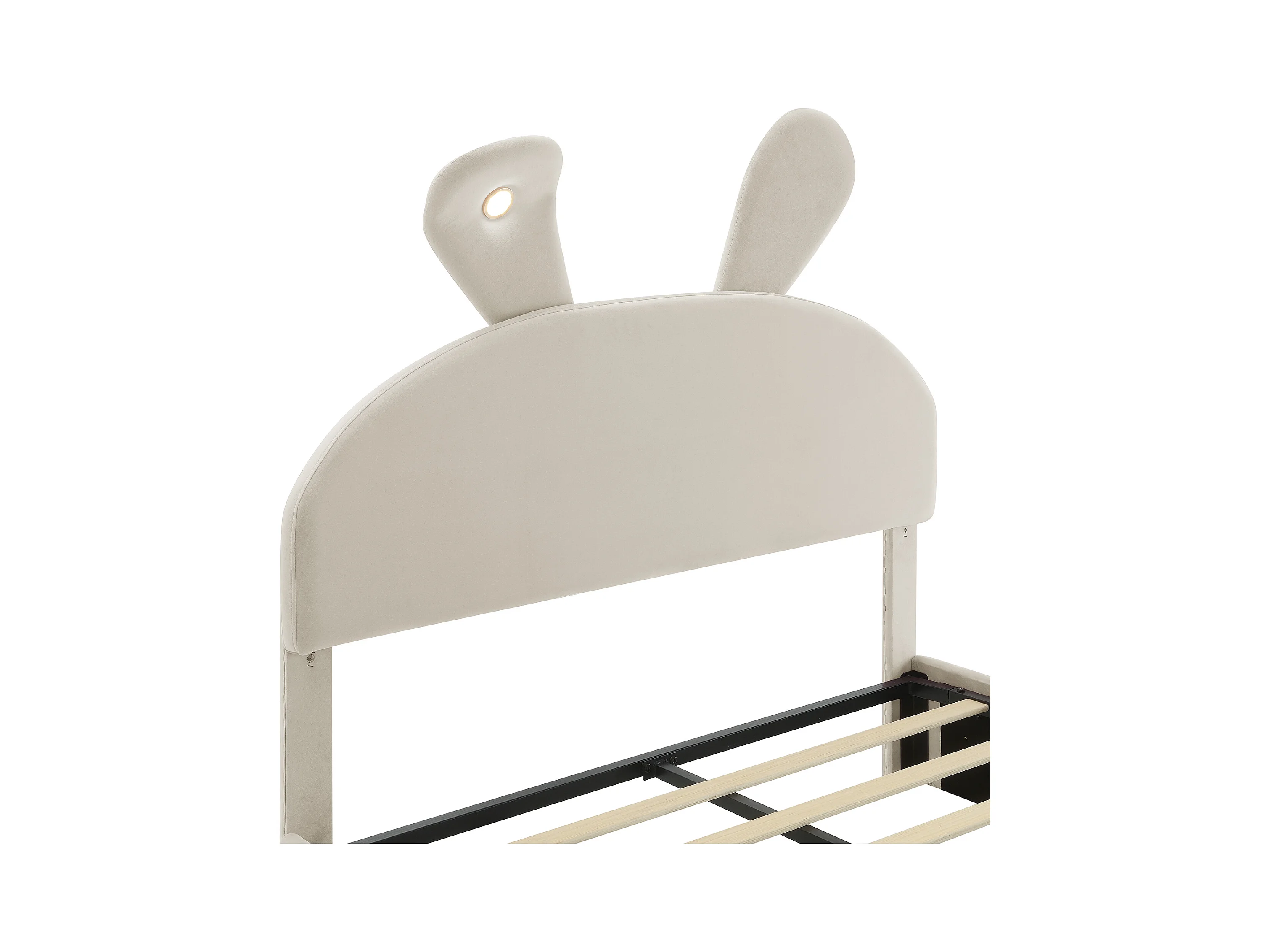 Lit simple 140x200 cm - Lit enfant avec deux banquettes de rangement et bandeau lumineux chaleureux - velours beige - sans matelas