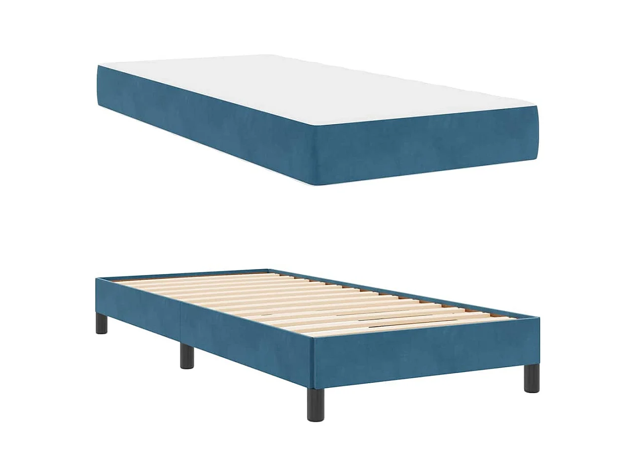 Lit simple adulte-Lit boxspring avec matelas Bleu foncé 100 x 200 cm Velours