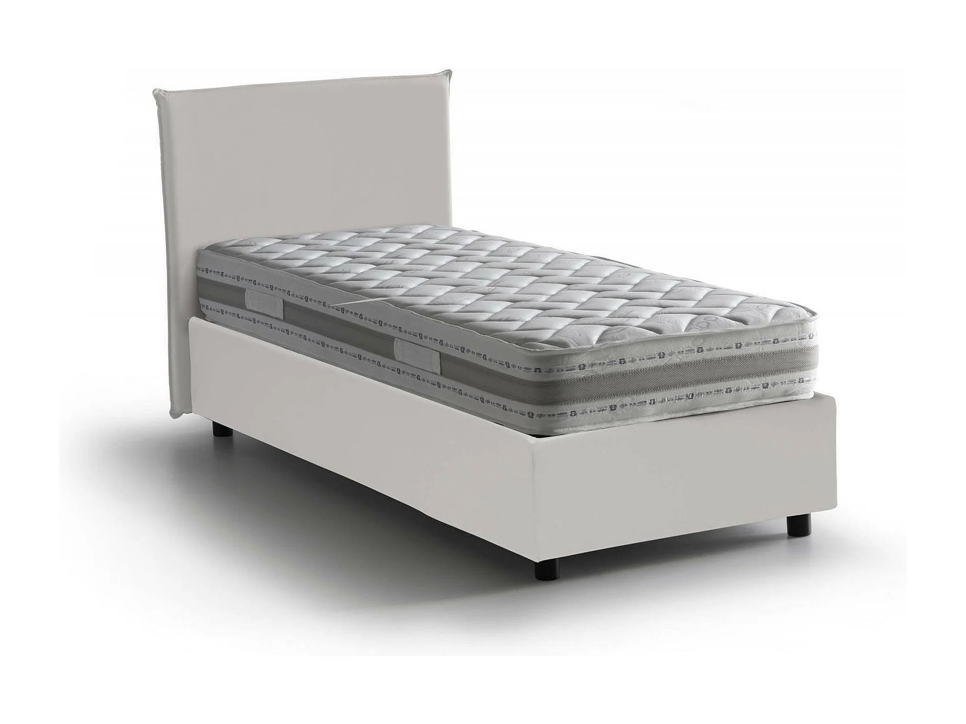 Lit simple Dbaiocc, Lit coffre avec revêtement en éco-cuir, 100% Made in Italy, Ouverture frontale, avec matelas 90x190 cm inclus, Blanc