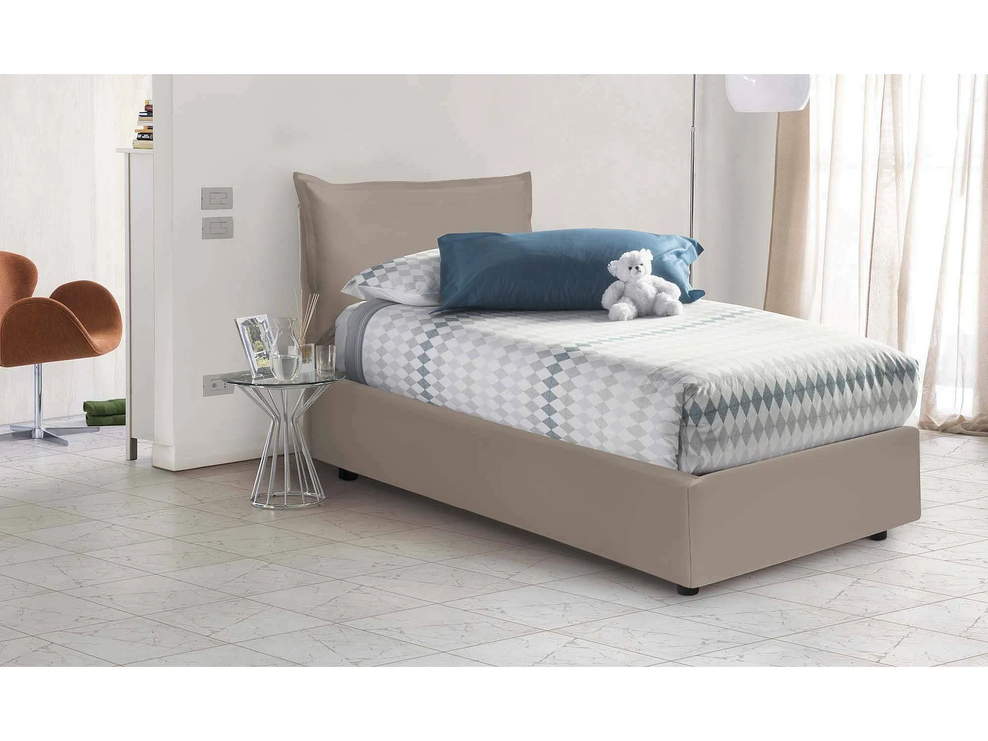 Lit simple Dgrillo, Lit coffre avec revêtement en éco-cuir, 100% Made in Italy, Ouverture latérale, avec matelas 80x190 cm inclus, Taupe