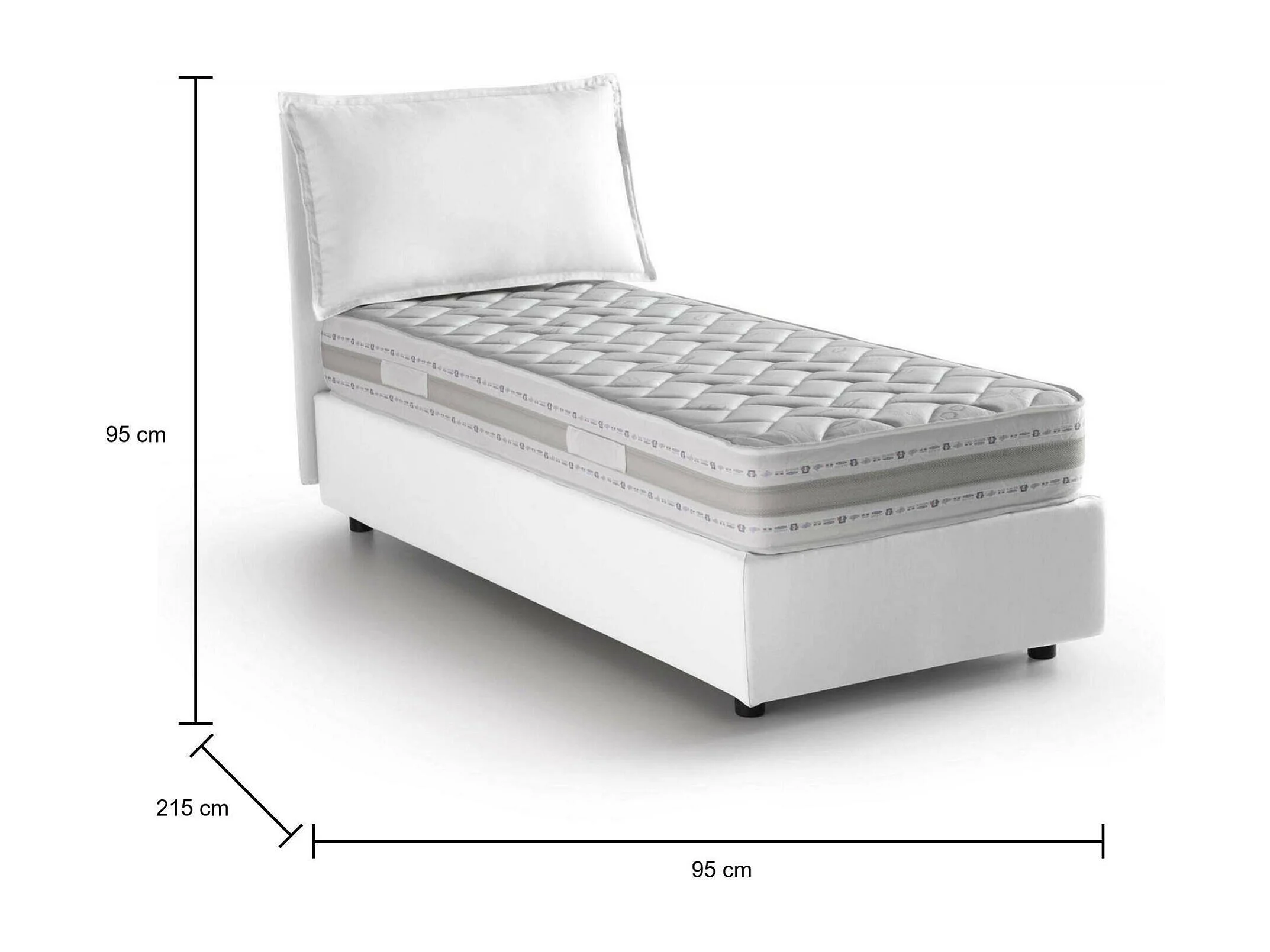Lit simple Dmarcon, Lit coffre avec revêtement en tissu, 100% Made in Italy, Ouverture frontale, avec matelas 80x200 cm inclus, Blanc