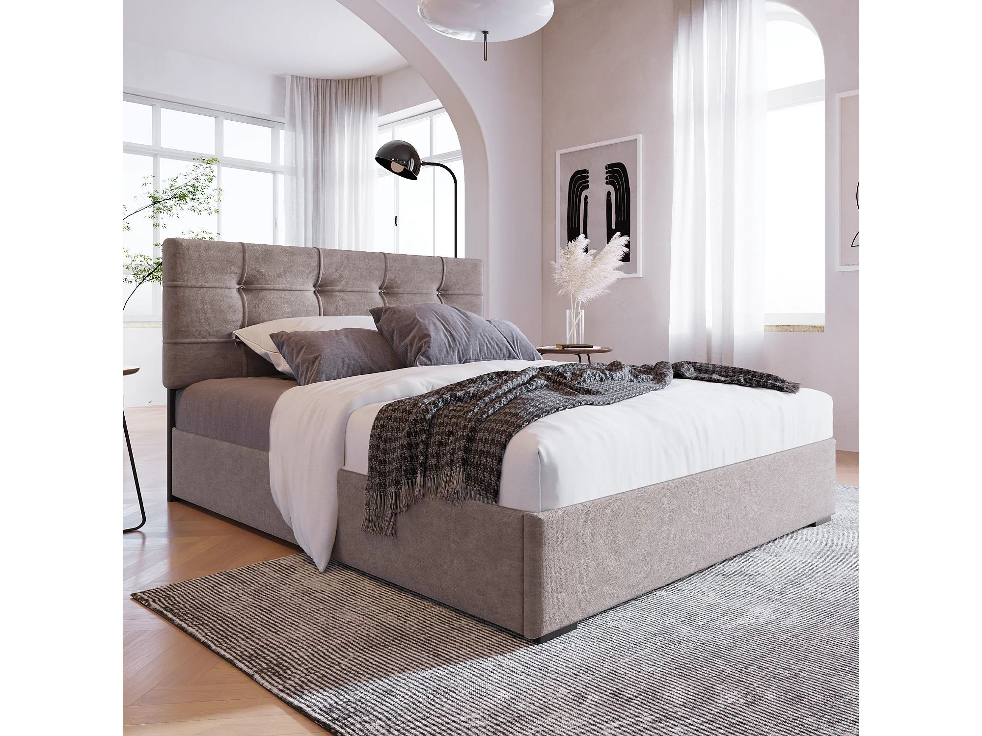 Lit simple hydraulique 90x200 cm, tête de lit réglable, cadre en métal avec sommier, velours gris clair