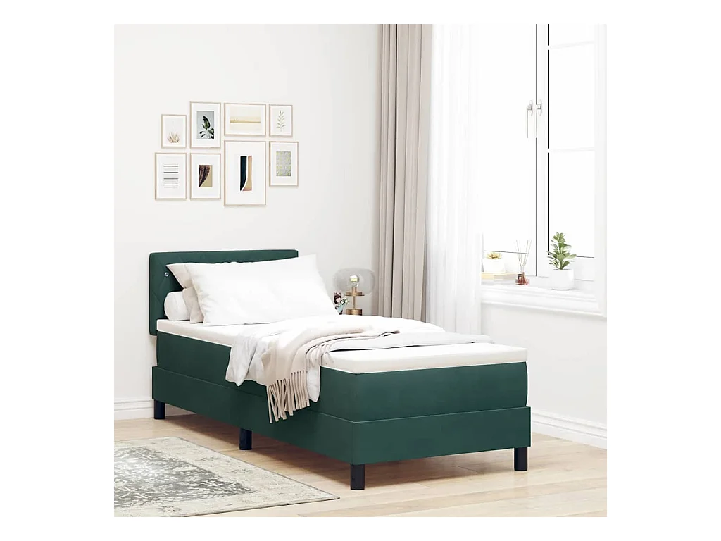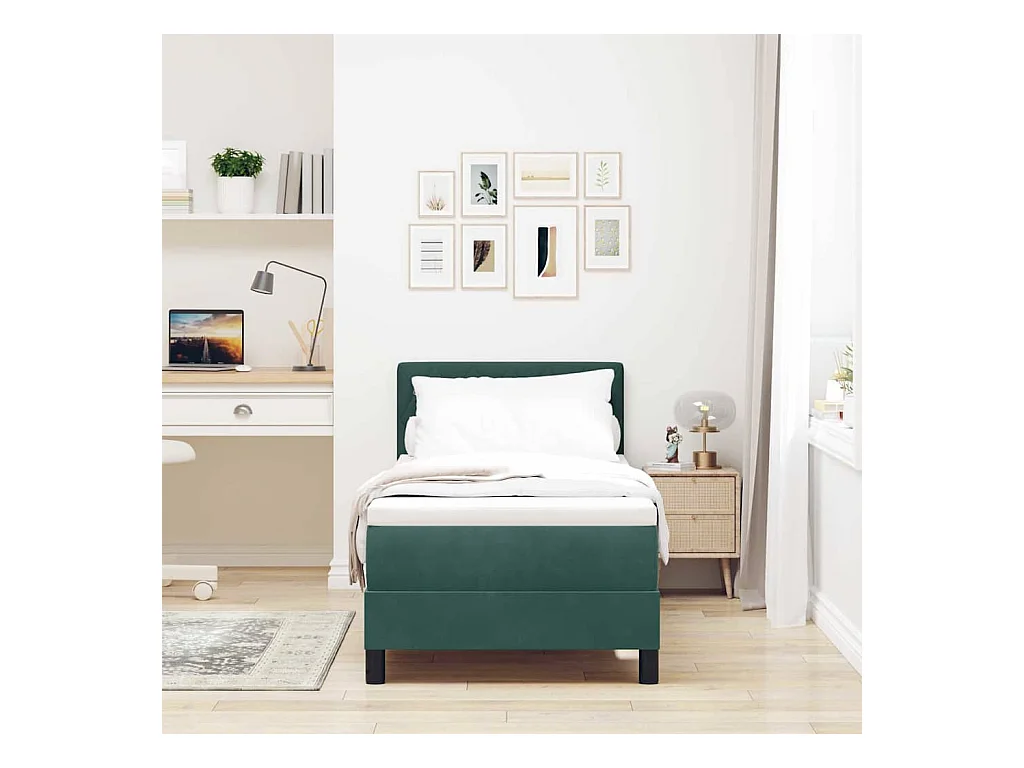 Lit simple-Lit à ressorts avec matelas Vert foncé 80 x 200 cm tissu