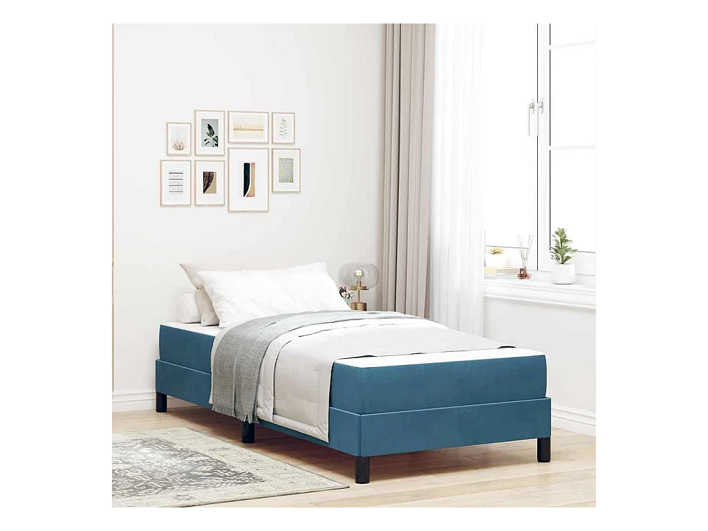Lit simple-Lit adulte-Lit boxspring avec matelas Bleu foncé 90 x 190 cm Velours