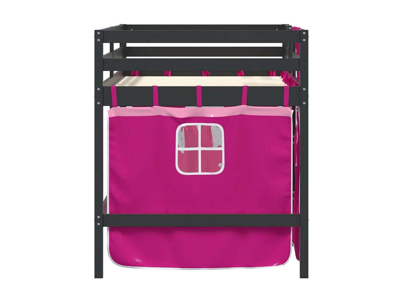 Lit simple-Lit mezzanine enfant avec rideaux sans matelas rose 80x200cm