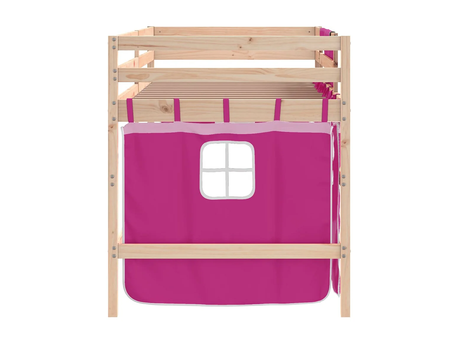 Lit simple-Lit mezzanine enfant avec rideaux sans matelas rose 80x200cm