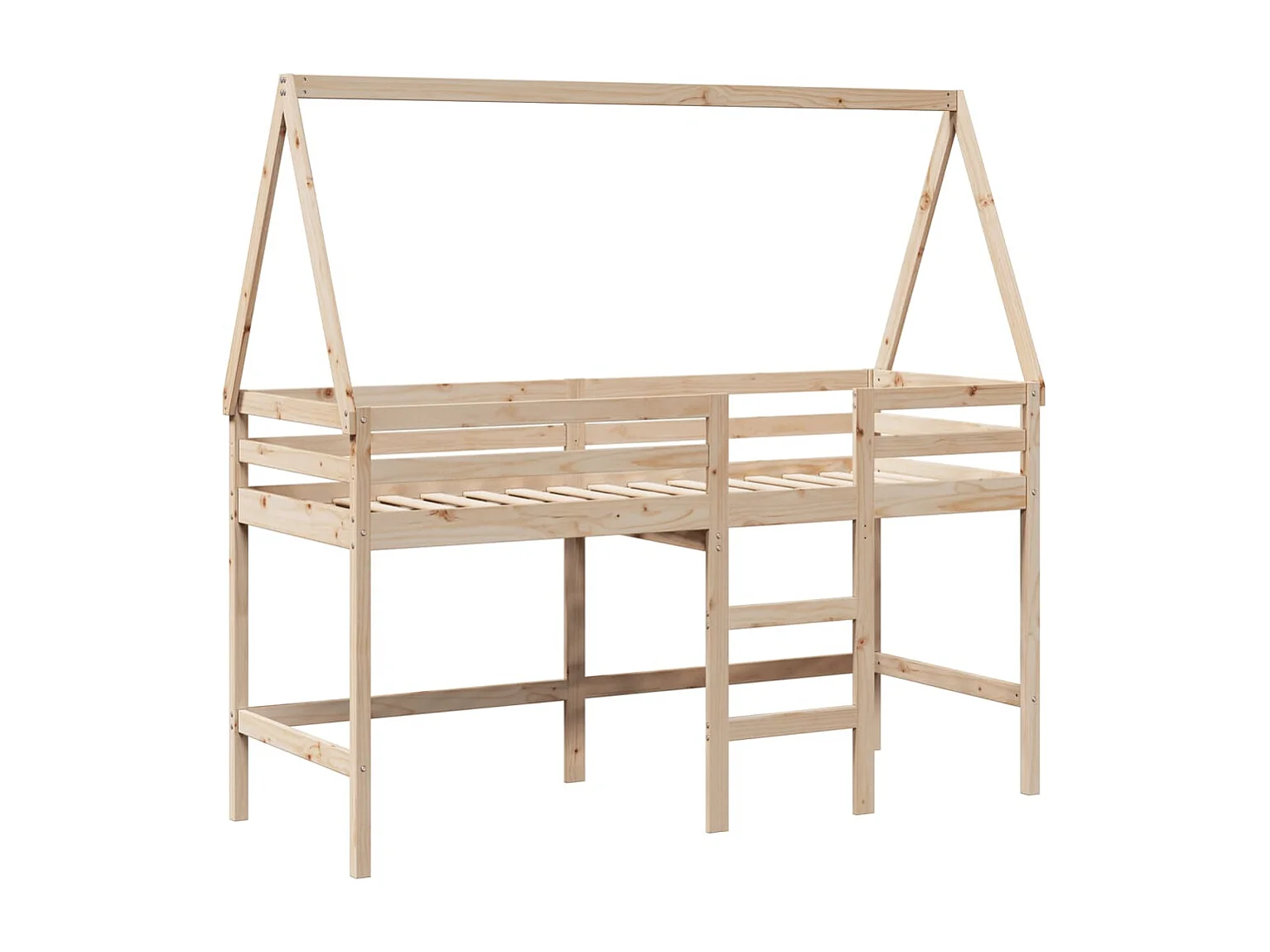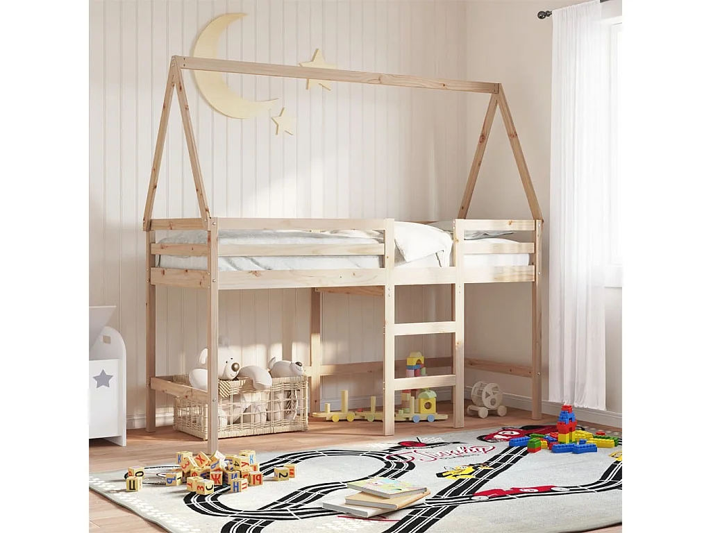 Lit simple-Lit superposé enfant avec échelle et toit sans matelas 80x200 cm