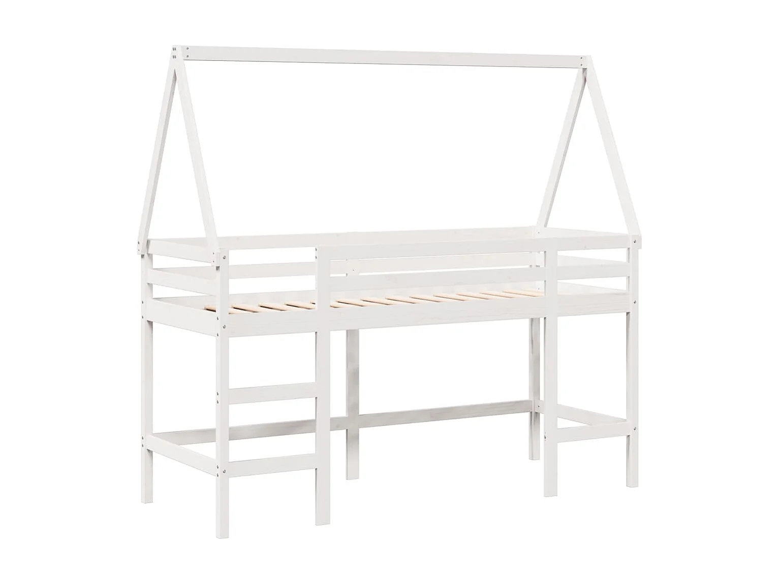 Lit simple-Lit superposé enfant avec échelle et toit sans matelas blanc 90x190 cm