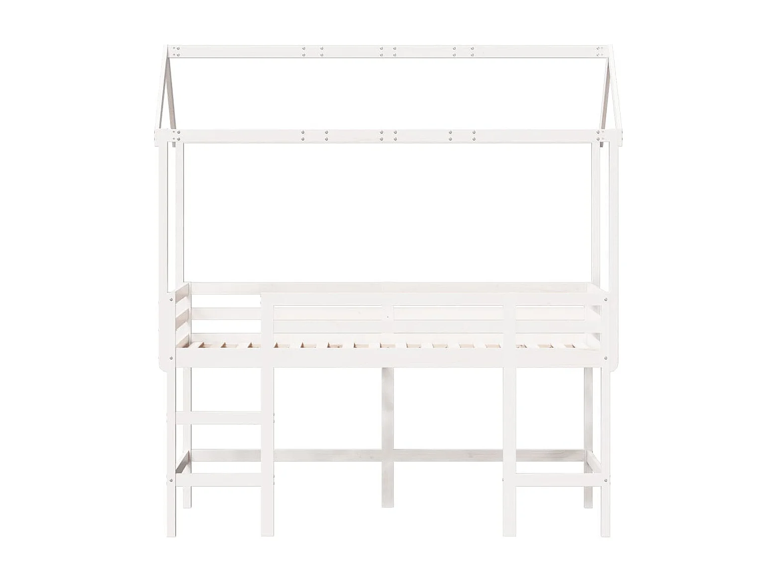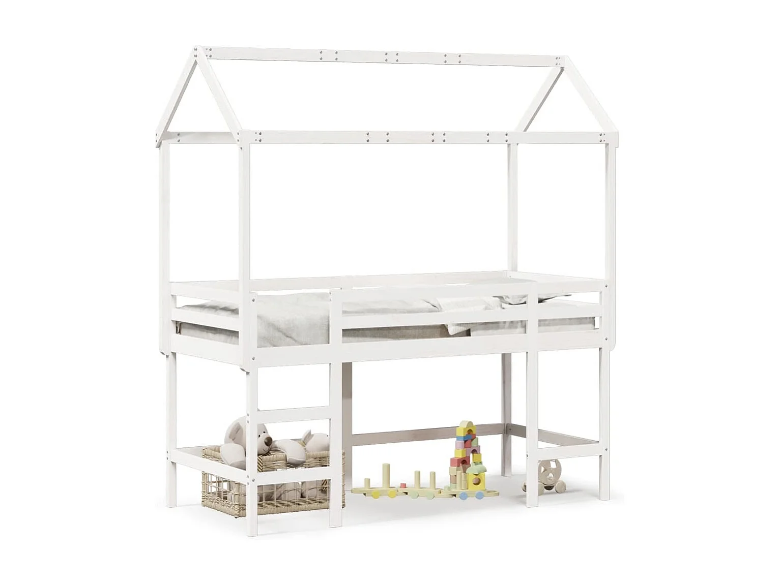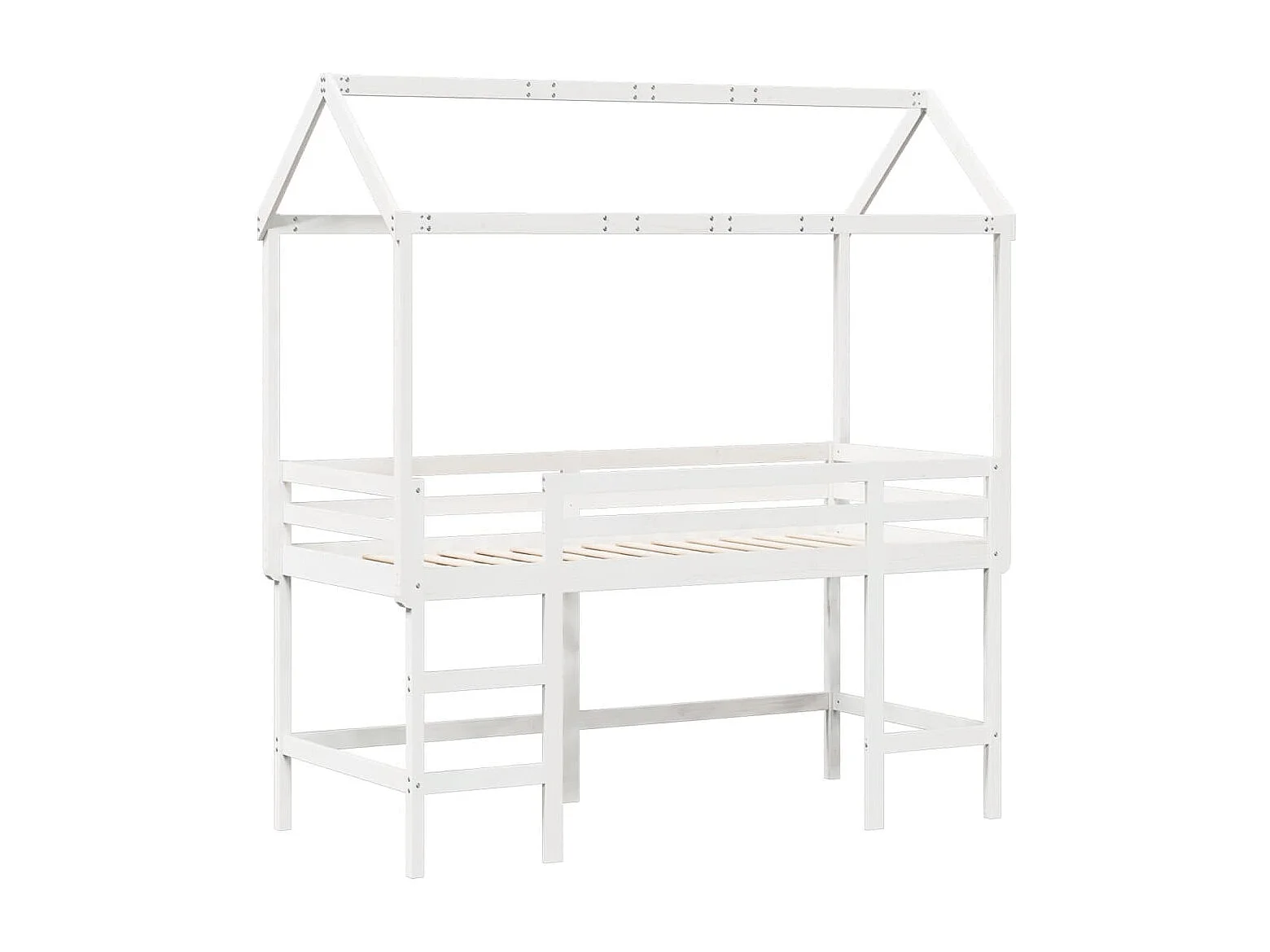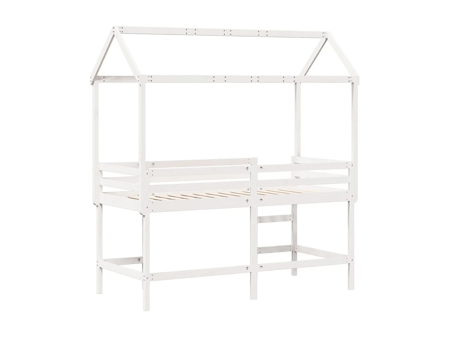 Lit simple-Lit superposé enfant avec échelle et toit sans matelas blanc 90x190 cm