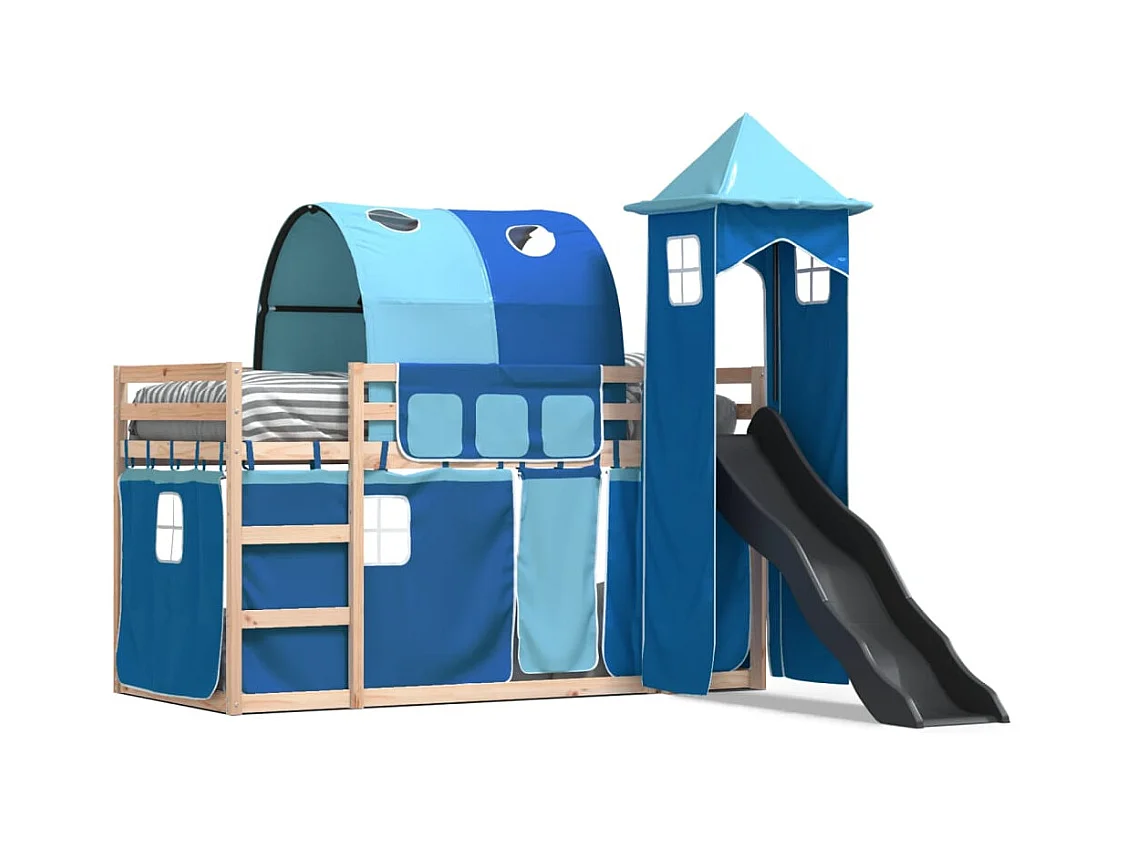 Lit simple-Lit superposé enfant sans matelas avec toboggan et rideaux 80x200 cm