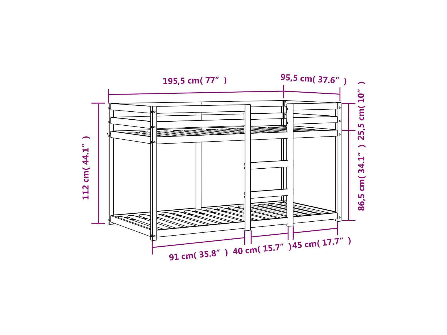 Lit simple-Lit superposé enfant sans matelas cire marron 90x190 cm pin massif