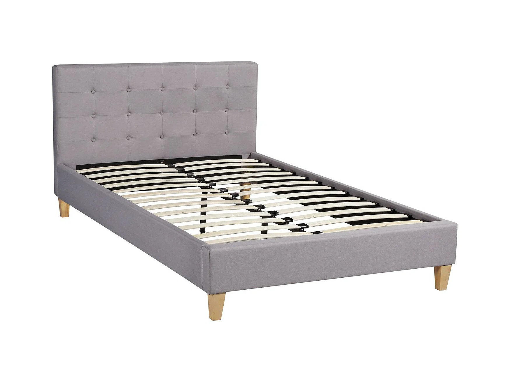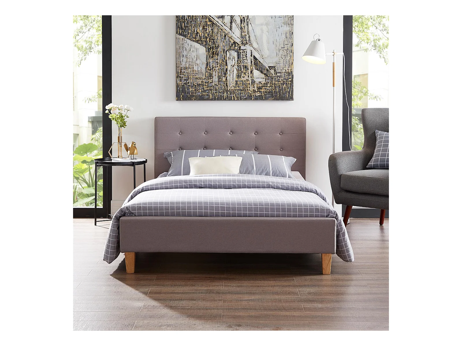 Lit simple pour adulte LILLE 120x190 cm 1 place et demi / 1 personne, avec sommier et pieds en bois, tissu capitonné gris