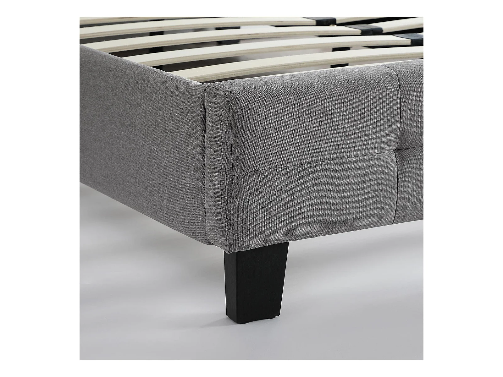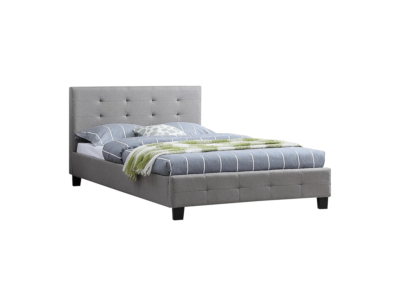 Lit simple pour adulte MARLON avec sommier 120x190 cm 1 place et demi / 1 personne, tête et pied de lit capitonnés, en tissu gris