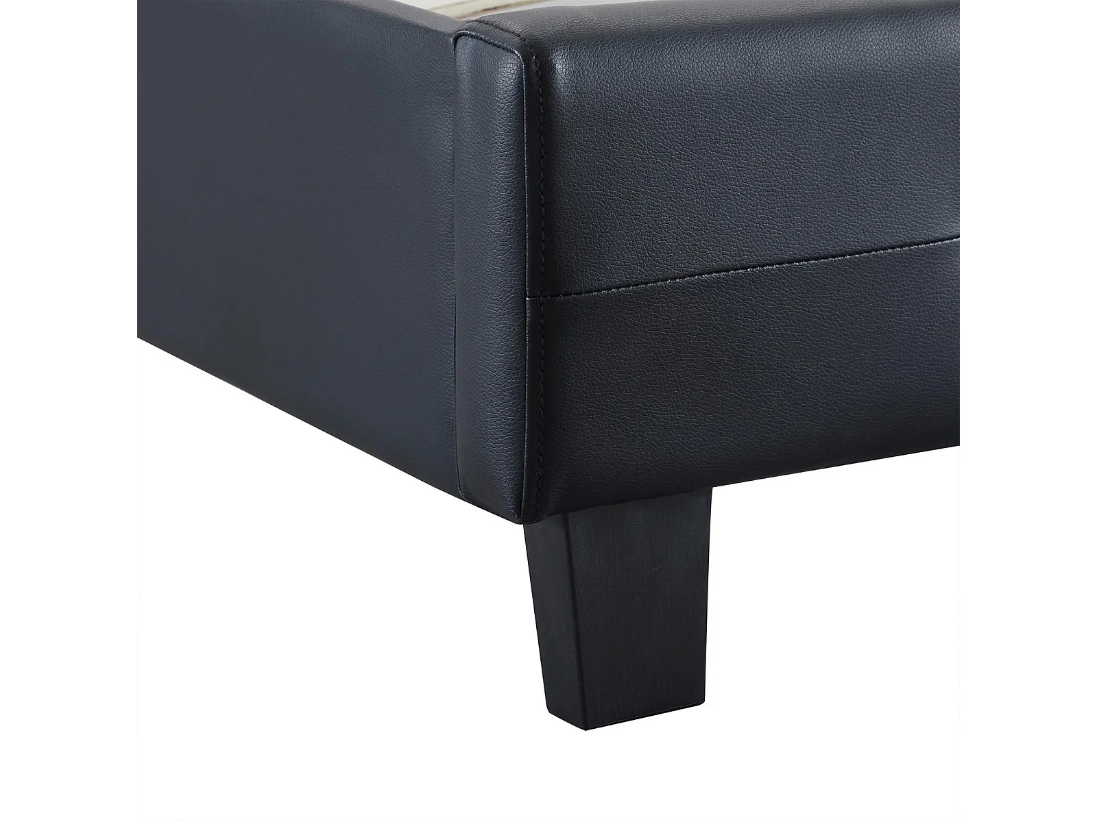 Lit simple pour adulte ou enfant REVE avec sommier 90x190 cm 1 place/1 personne, tête et pied de lit capitonnés, en synthétique noir