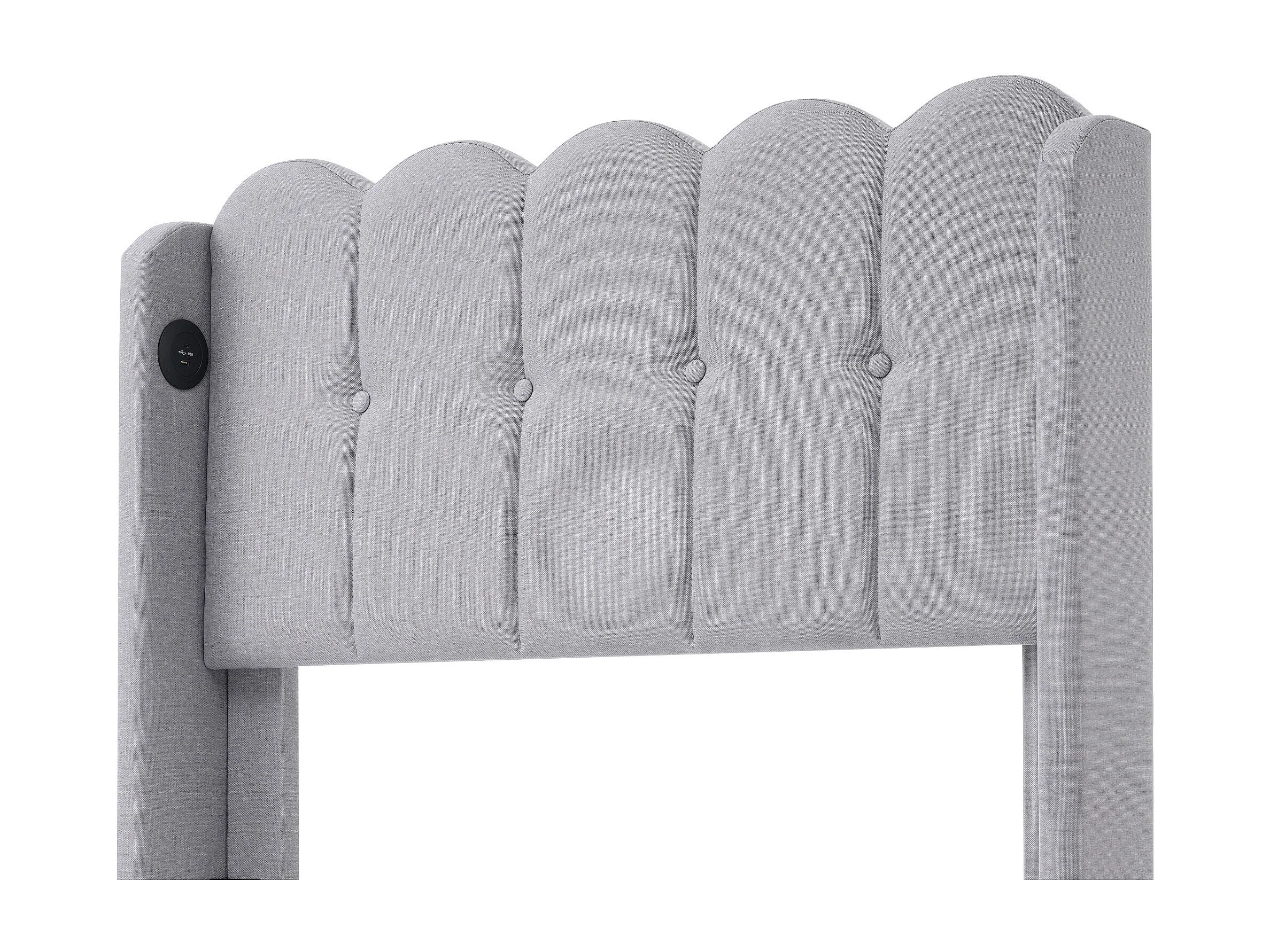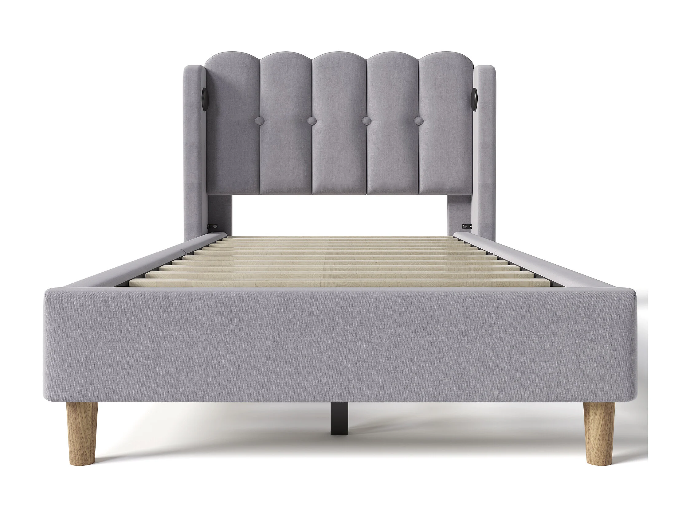 Lit simple 90x200 cm - Lit enfant avec chargement USB - lin gris - sommier à lattes en bois
