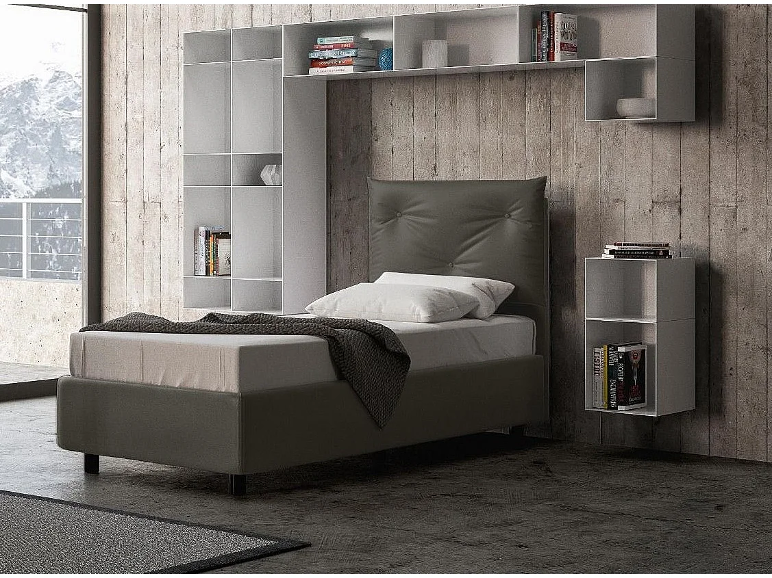 Lit simple sur mesure avec sommier simili cuir gris Apango 120x190