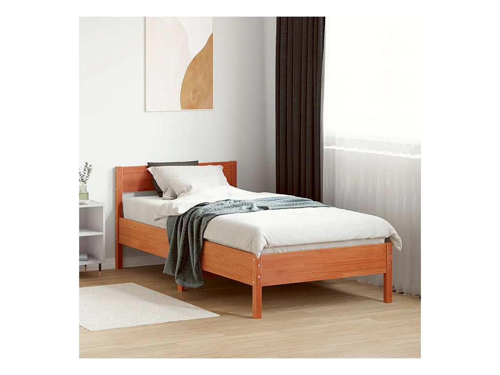 Lit simple + tête de lit cire marron 90x190 cm bois de pin FR15322