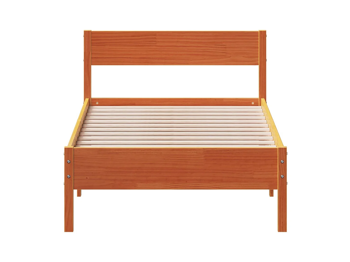 Lit simple + tête de lit cire marron 90x190 cm bois de pin FR27214