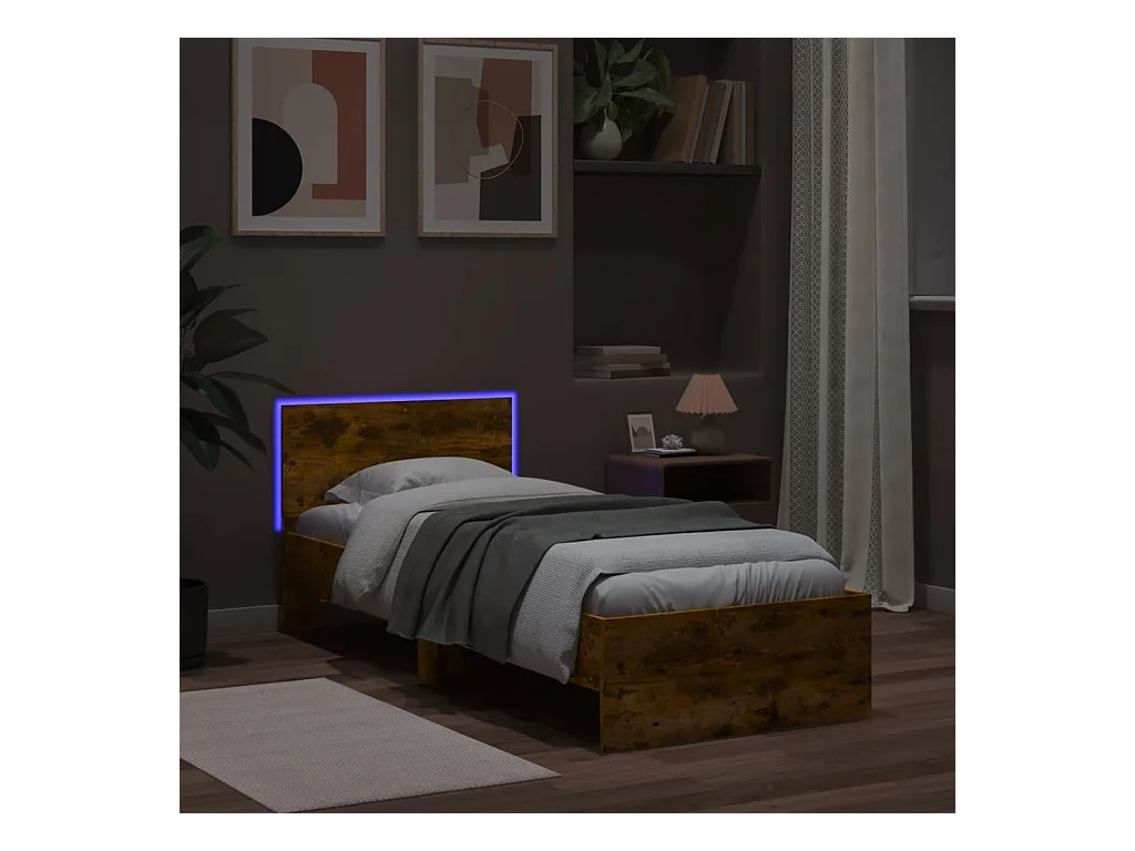 Lit simple tête de lit et lumières LED chêne fumé 75x190 cm FR10085